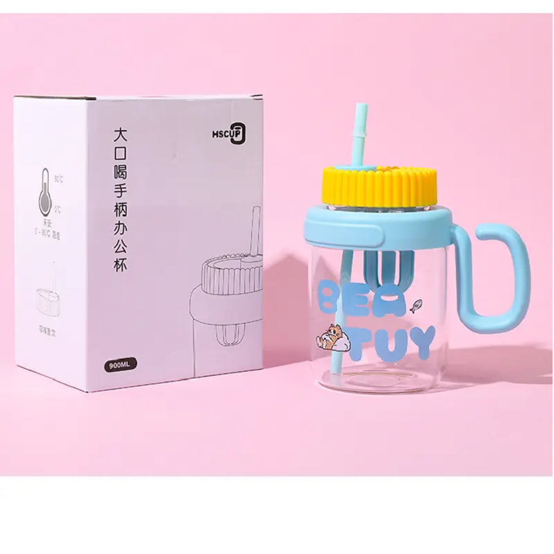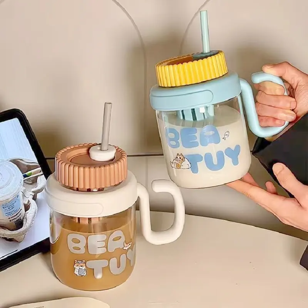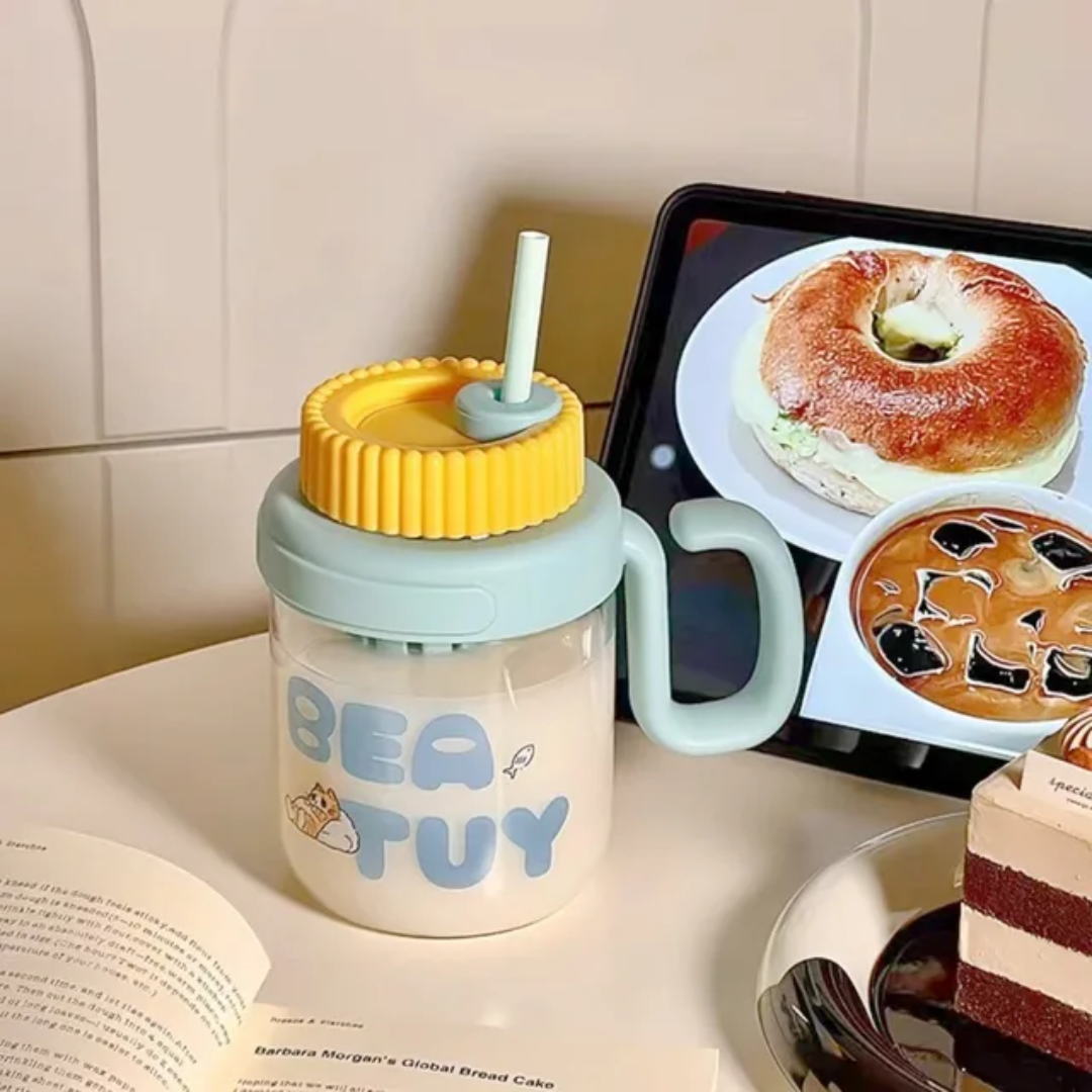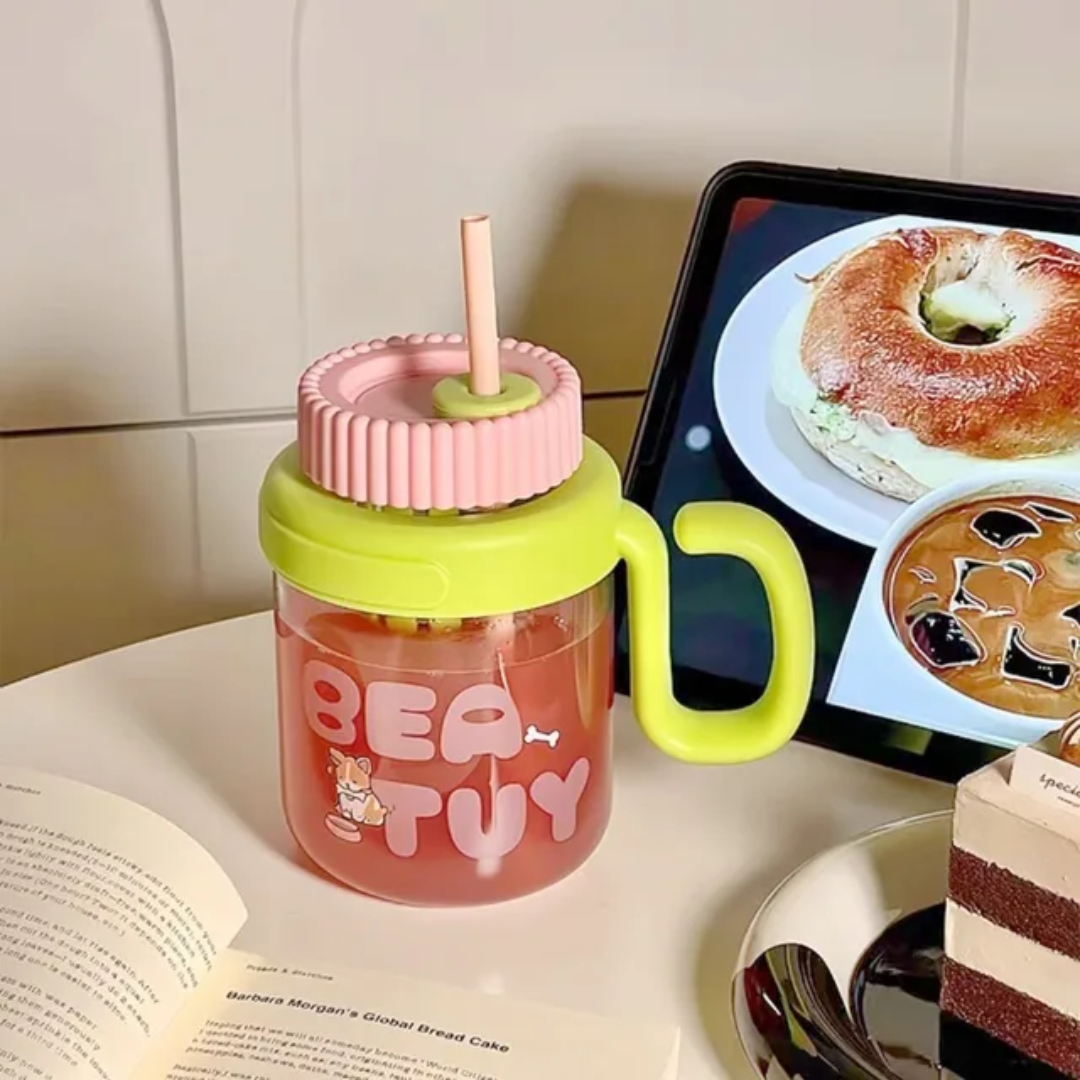 🐻 Cute Bear-Themed Straw Cup with Handle – Colorful & Fun Drinkware