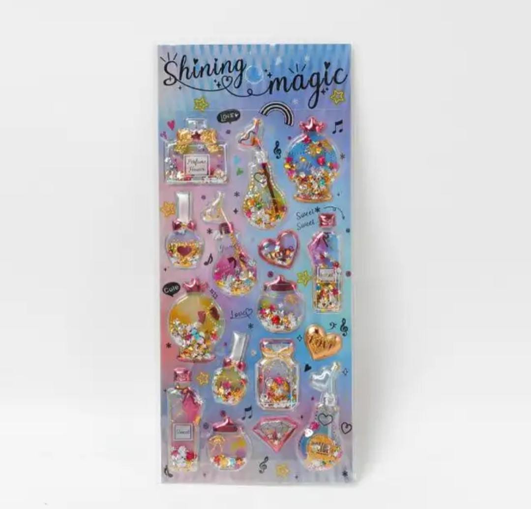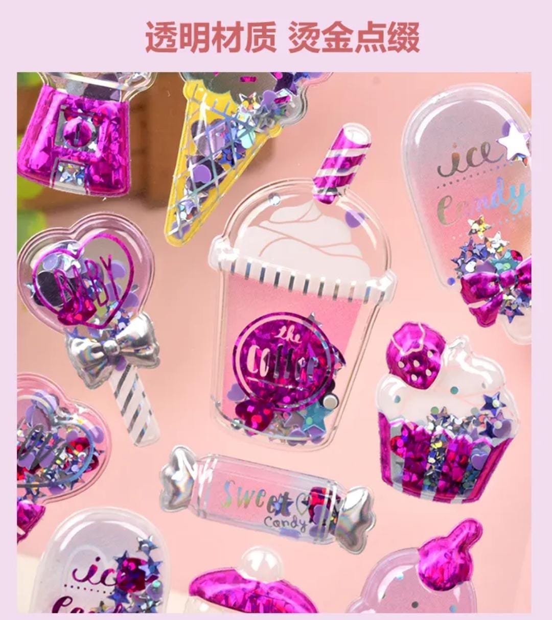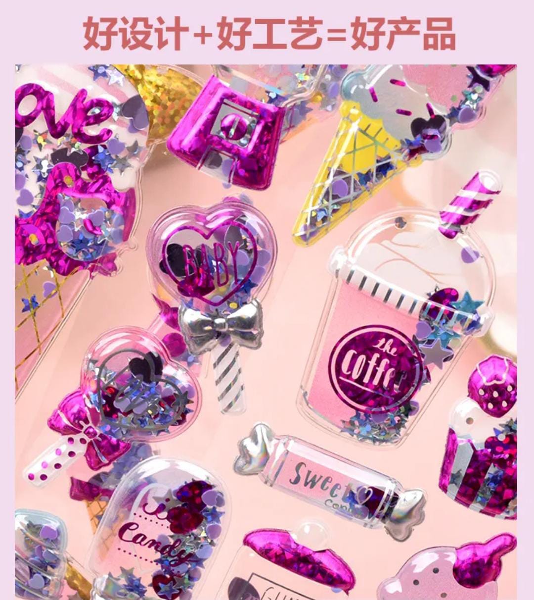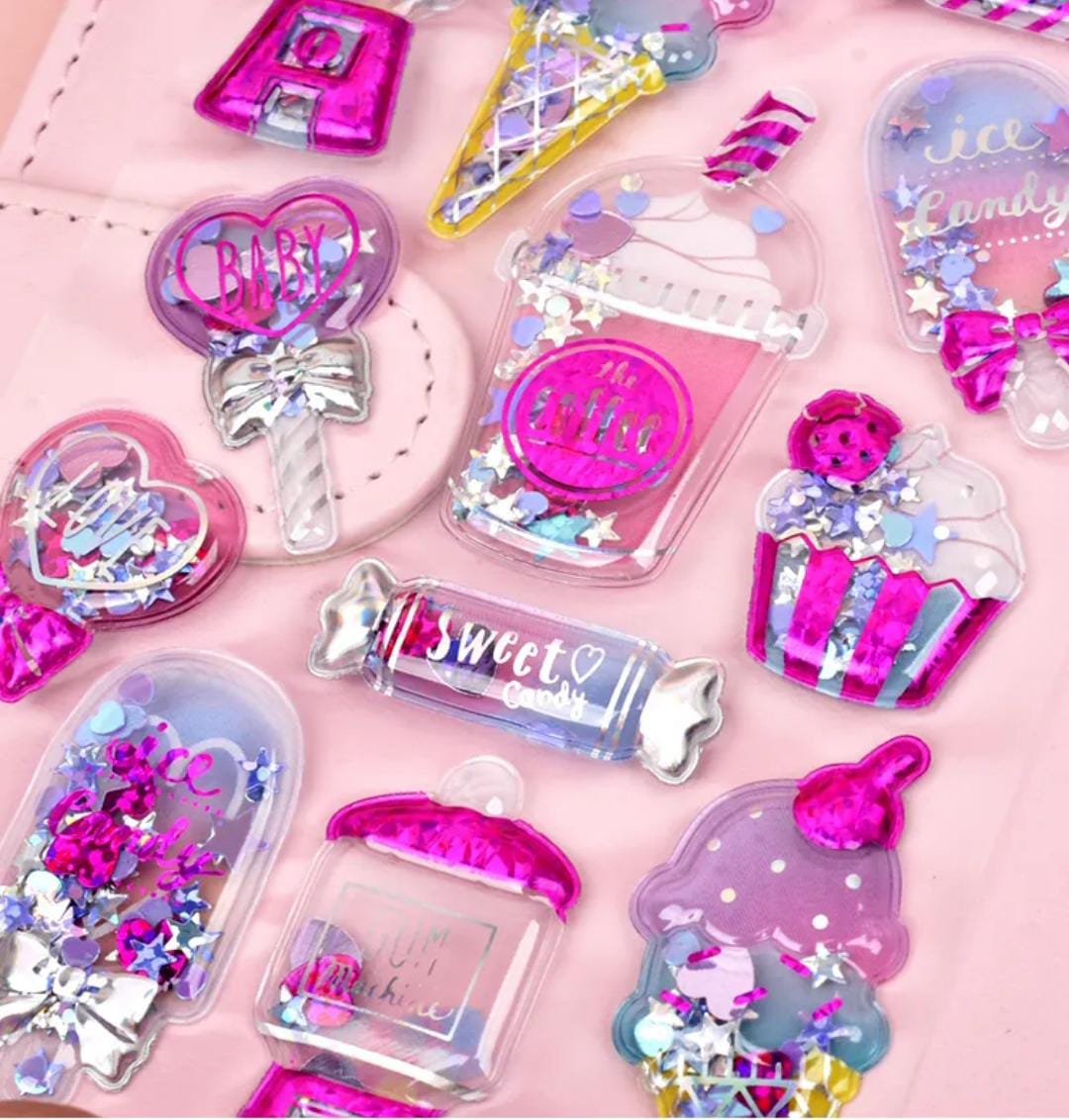 3D Confetti-Filled Stickers are fun, eye-catching stickers that have a playful twist — they’re slightly puffy and contain tiny, colorful confetti pieces sealed inside a clear, flexible layer. When you move the sticker, the confetti shifts and sparkles, giving a lively, interactive feel. These stickers often come in fun shapes like stars, hearts, animals, or cute objects, and are perfect for decorating notebooks, phone cases, scrapbooks, or gifts. They combine texture, shine, and movement to make ordinary stickers extra exciting and joyful.