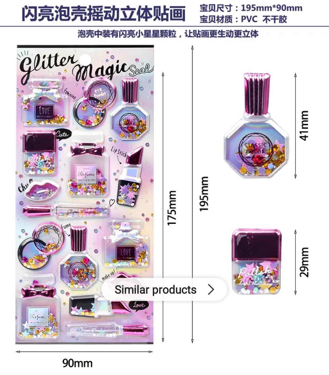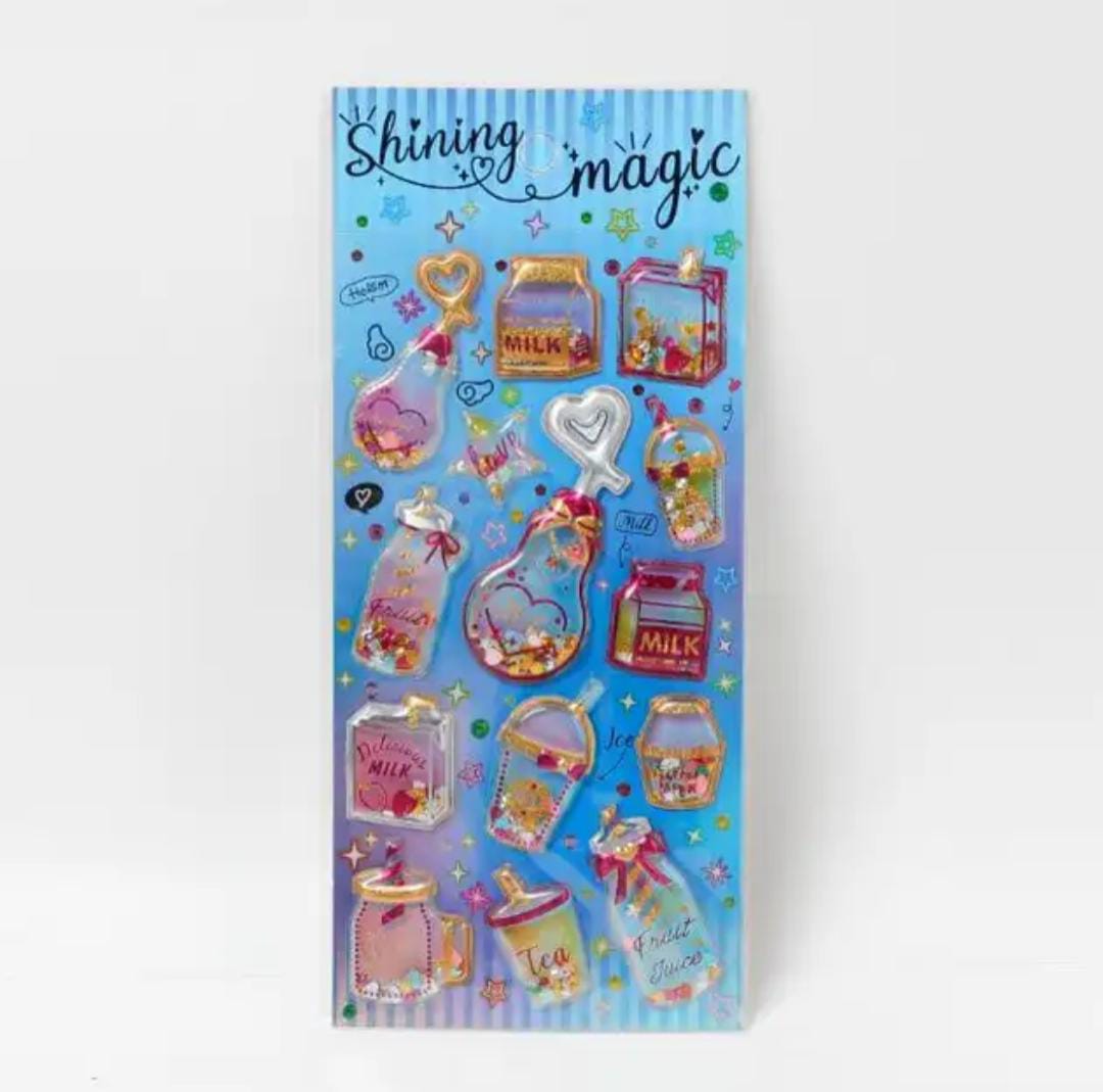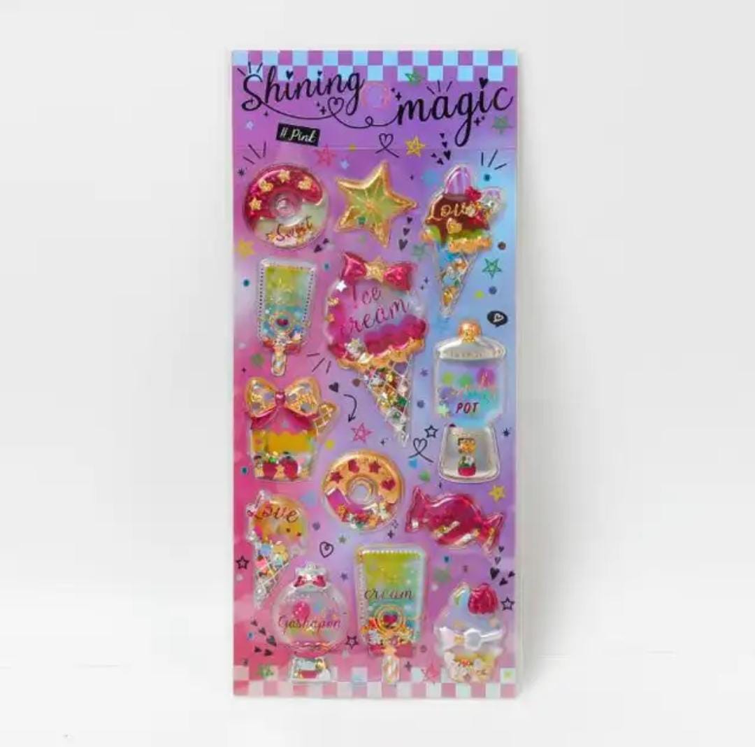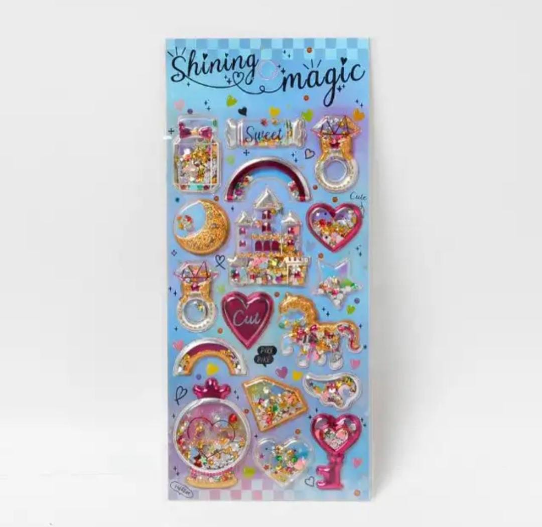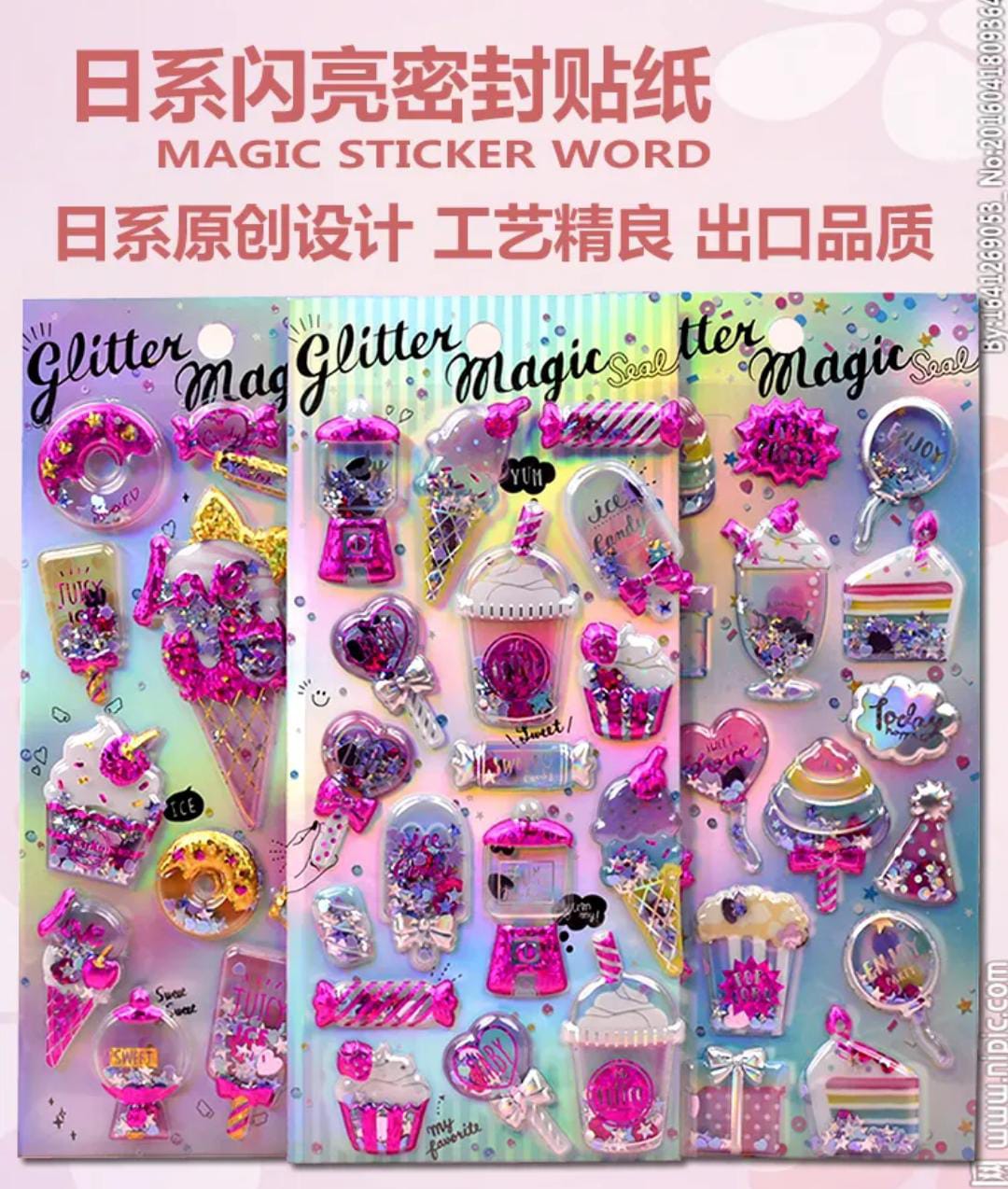 3D Confetti-Filled Stickers are fun, eye-catching stickers that have a playful twist — they’re slightly puffy and contain tiny, colorful confetti pieces sealed inside a clear, flexible layer. When you move the sticker, the confetti shifts and sparkles, giving a lively, interactive feel. These stickers often come in fun shapes like stars, hearts, animals, or cute objects, and are perfect for decorating notebooks, phone cases, scrapbooks, or gifts. They combine texture, shine, and movement to make ordinary stickers extra exciting and joyful.