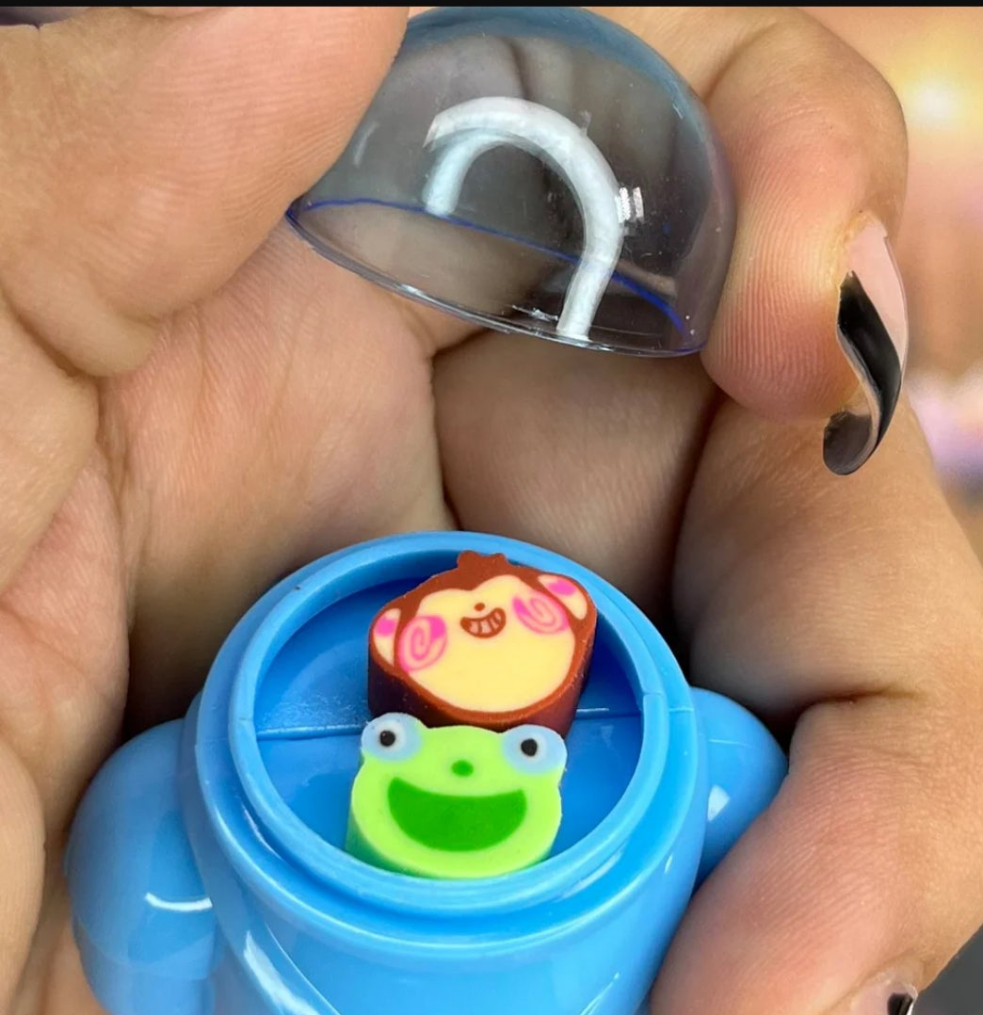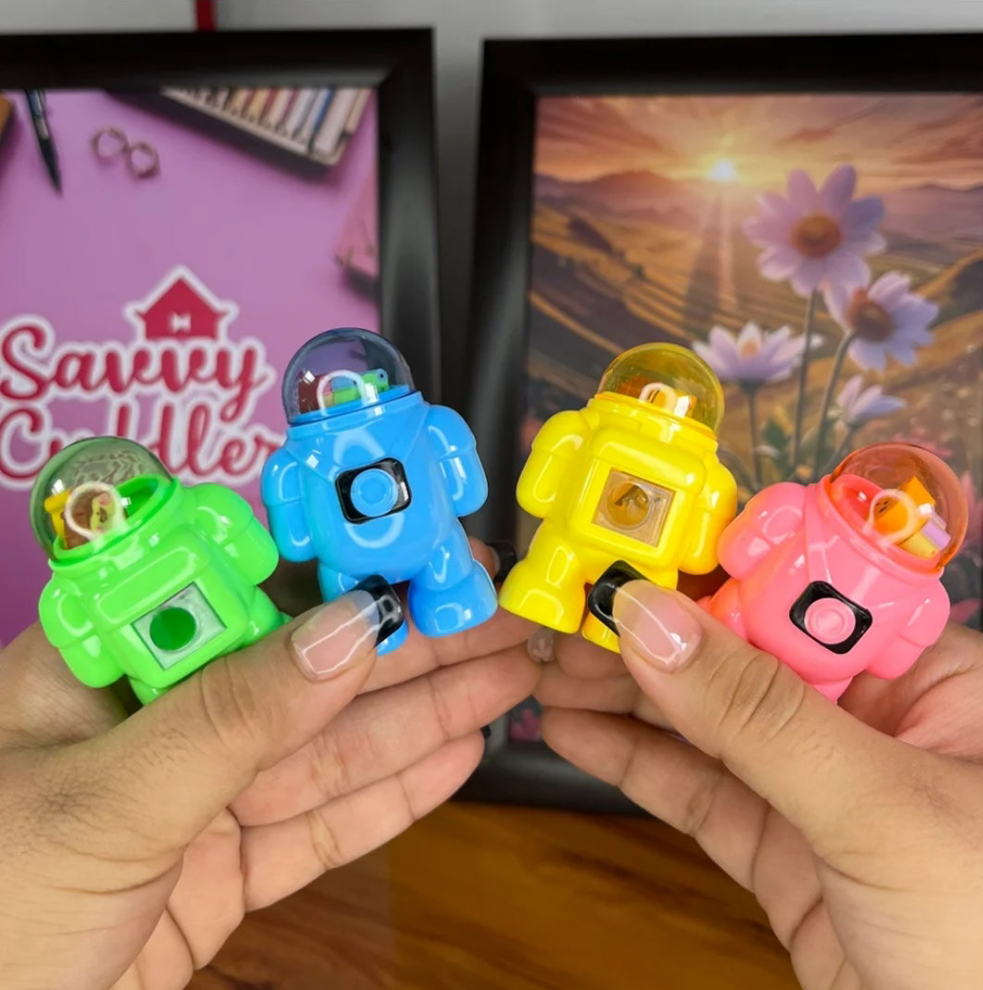 • Product: Astronaut-shaped pencil sharpener with mini erasers
