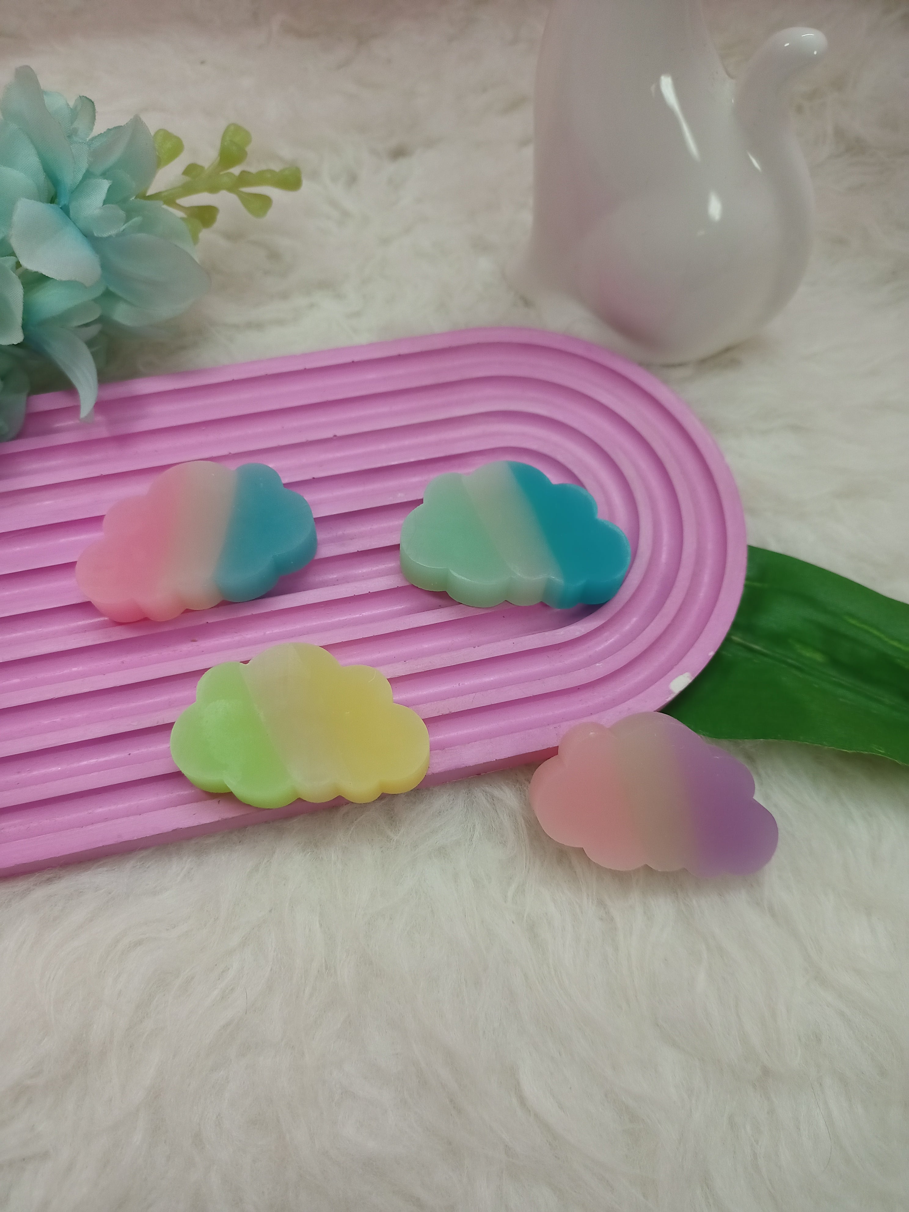 • Coloration: Each cloud displays a gradient of pastel colors, such as pink, yellow, blue, and green, creating a "rainbow" or "cotton candy" effect.