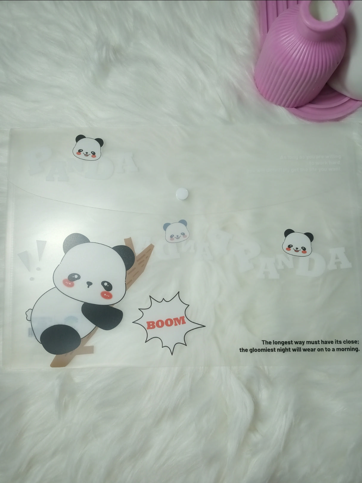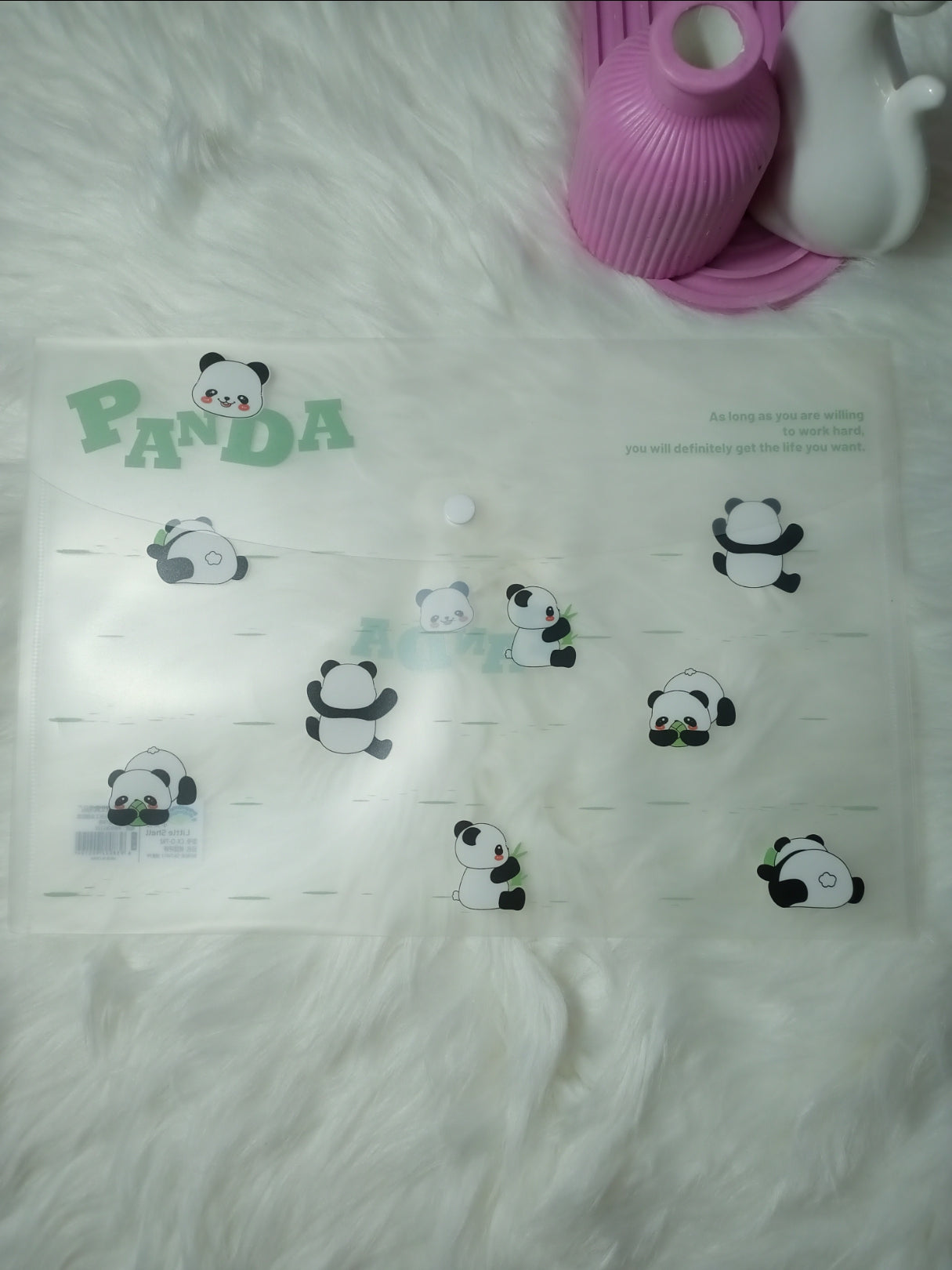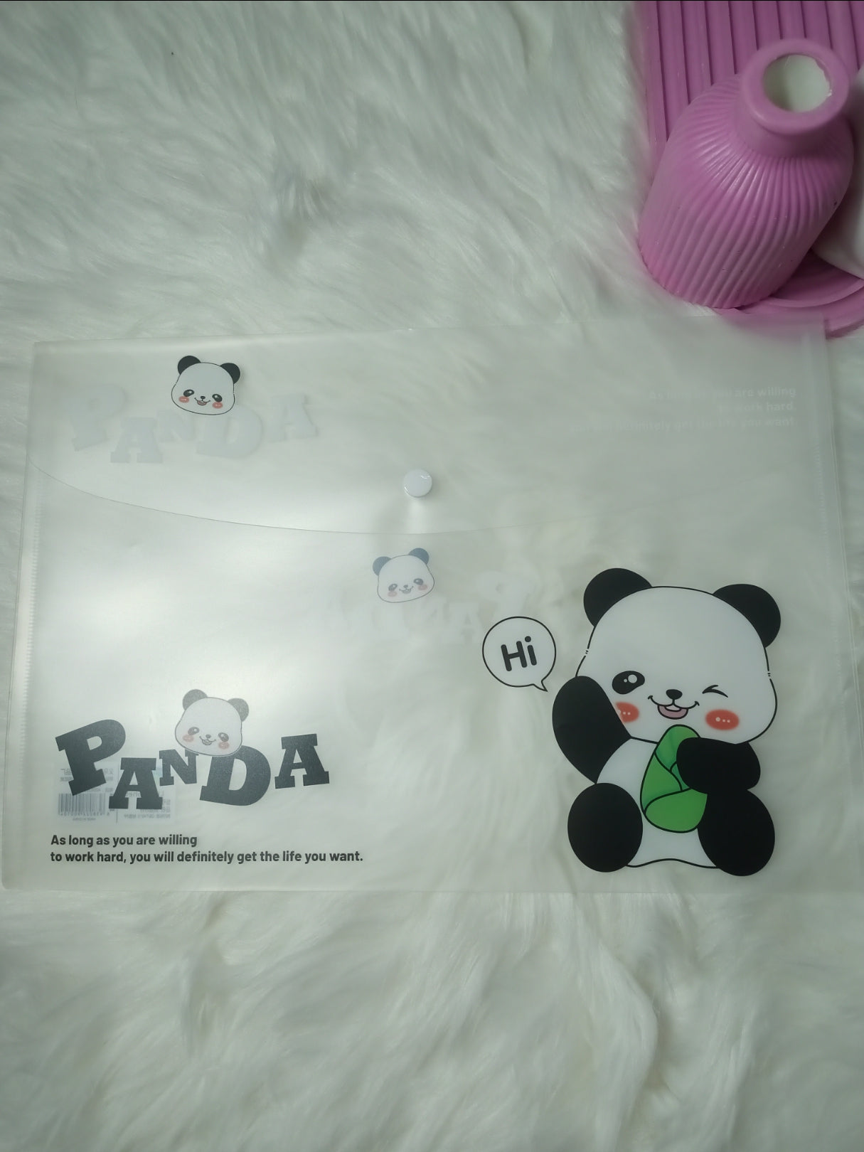 This adorable and functional folder is perfect for students, professionals, and anyone who loves pandas. It is made from durable, clear plastic, allowing you to easily see the contents inside. The folder features a charming design with multiple cartoon pandas in various poses, making it a fun and stylish way to stay organized