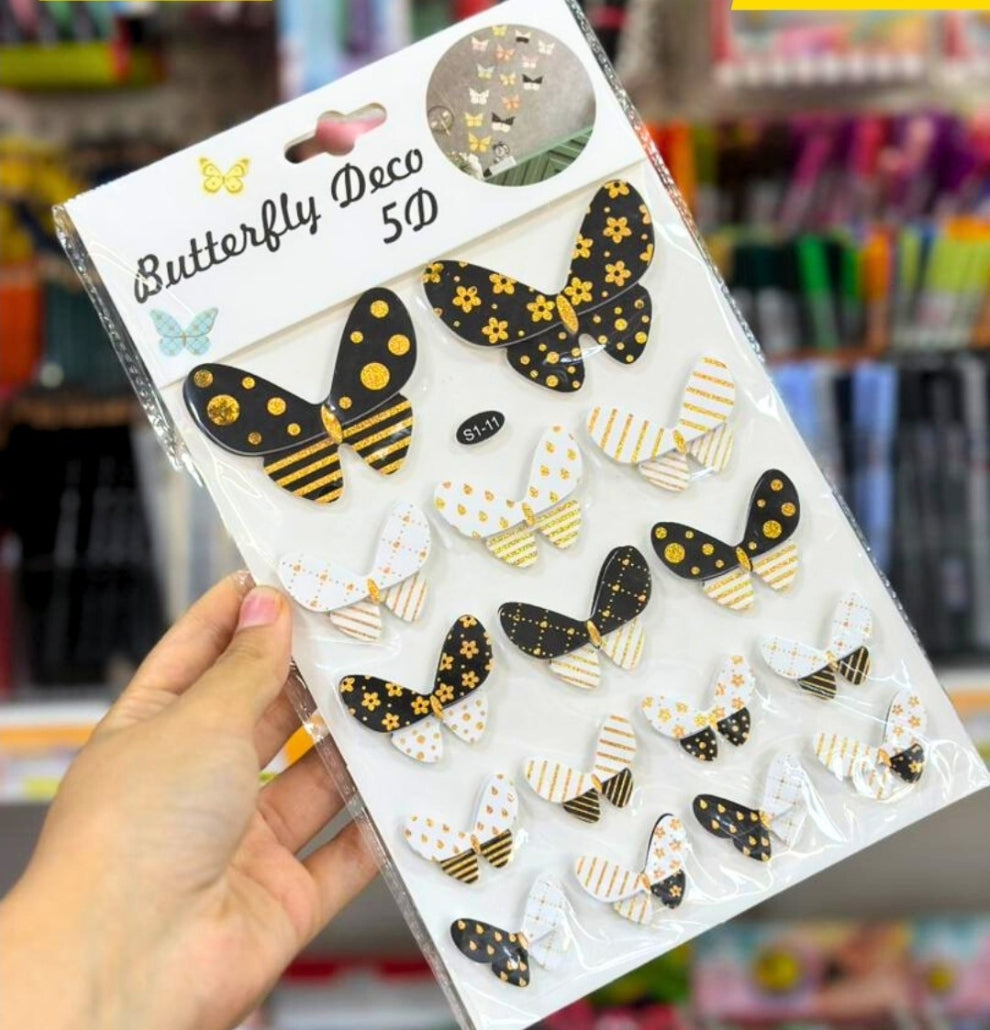 DIY Butterfly Stickers are creative and fun craft stickers that let you design and decorate beautiful butterfly-themed creations. These sets usually include a variety of butterfly shapes in different sizes, along with colorful embellishments like glitter, gems, or foil accents. Some kits allow you to color or layer the wings yourself, adding a personal touch to each butterfly. Perfect for decorating notebooks, scrapbooks, greeting cards, or gift wrap, these stickers are ideal for kids, crafters, and anyone who loves nature-inspired, hands-on activities.