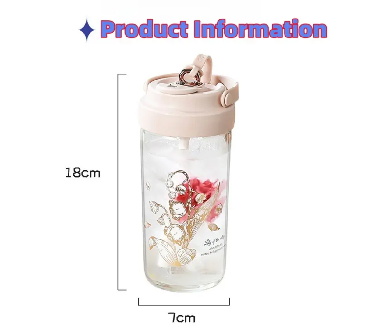 Stay hydrated in style with this beautiful floral glass water bottle, featuring a delicate Lily of the Valley design that exudes elegance and charm. Perfect for both hot and cold drinks, this bottle combines sophistication with everyday convenience.