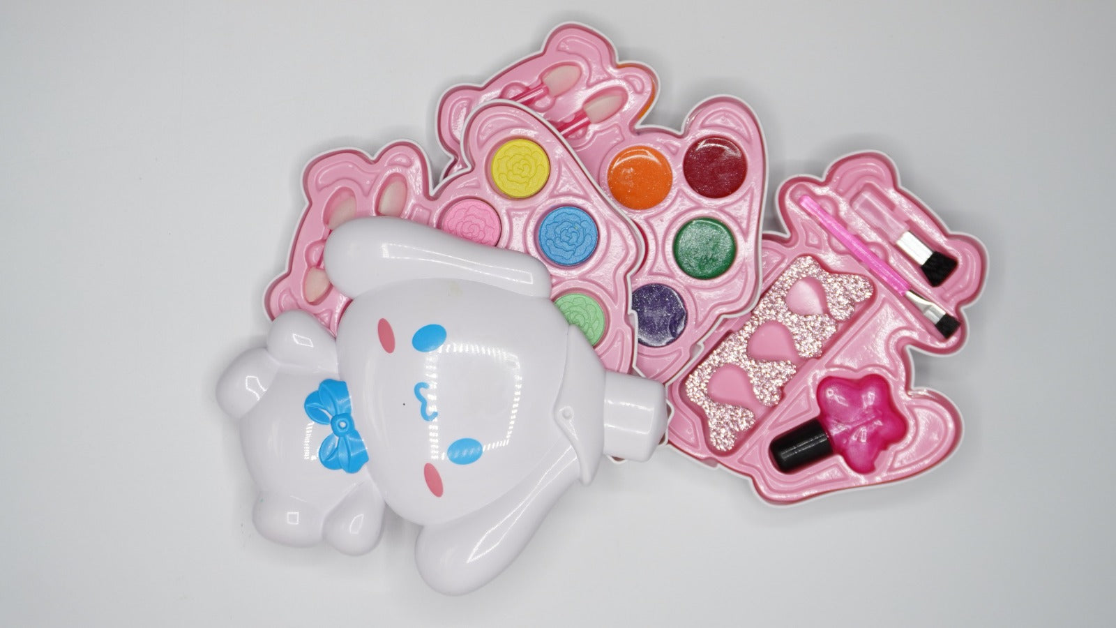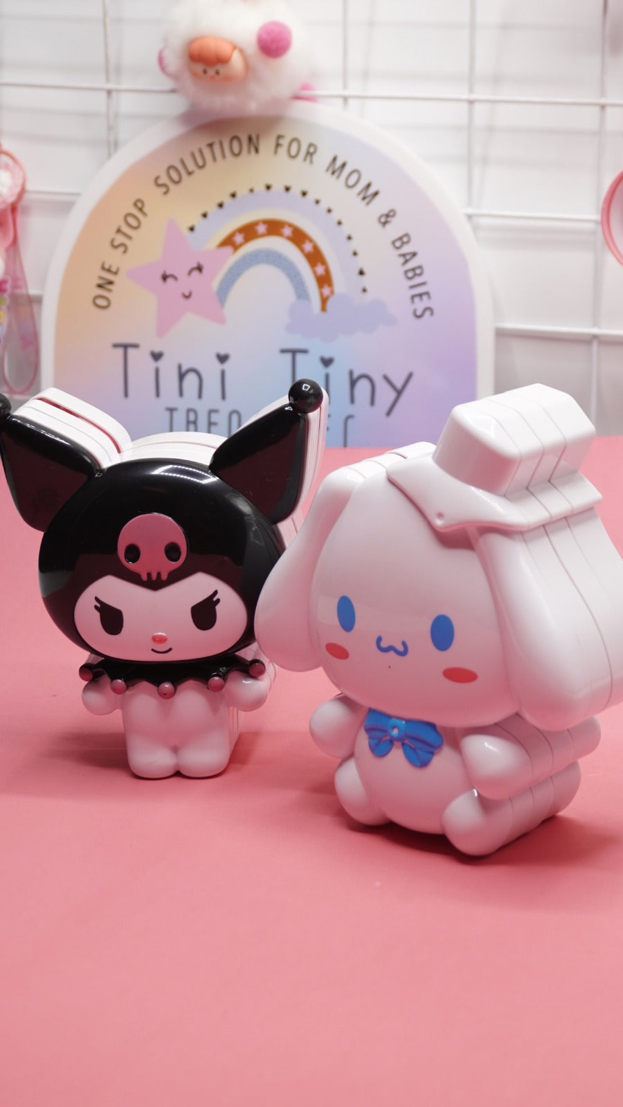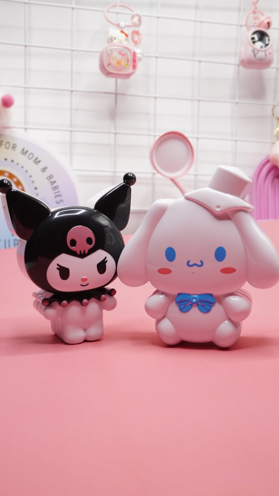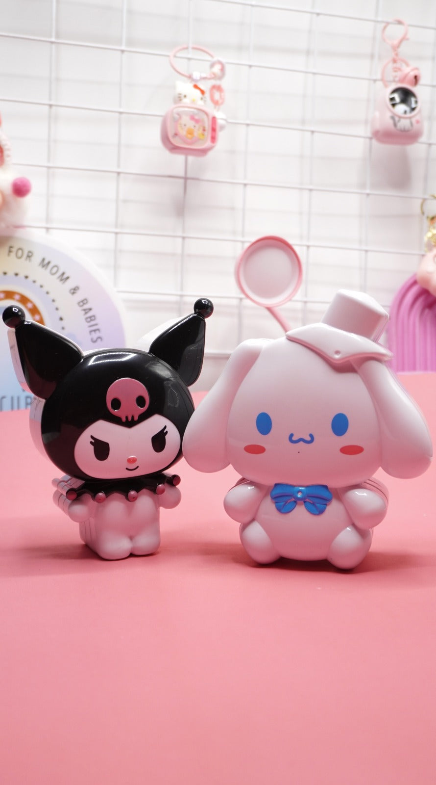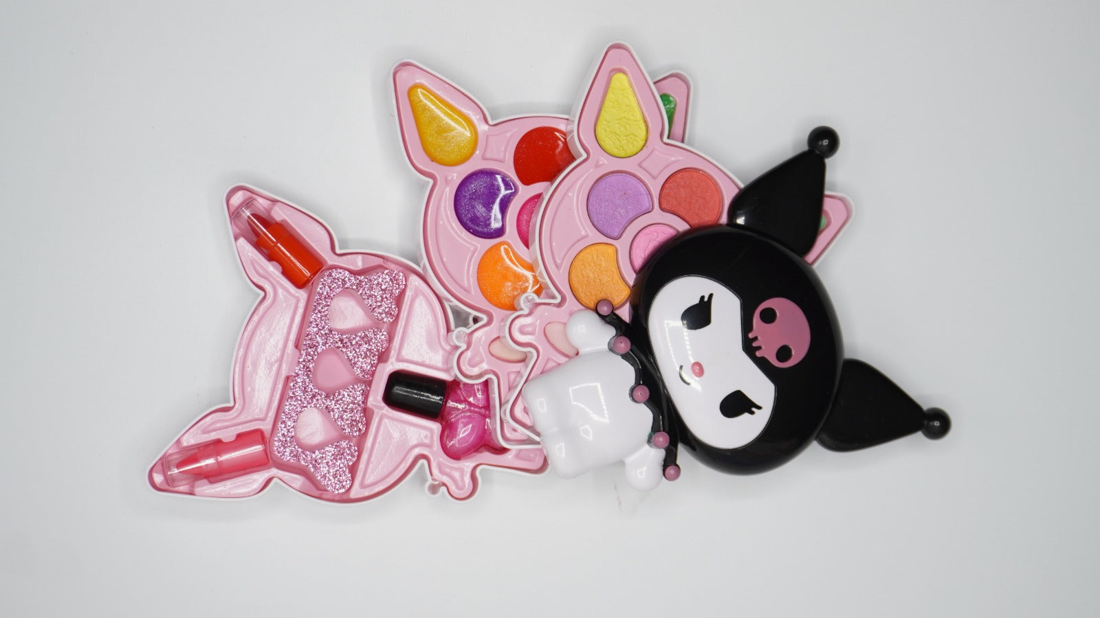 The Kuromi makeup kit is a cute and stylish cosmetic set inspired by the popular Sanrio character, Kuromi. It usually features playful packaging with her signature punk-gothic style—black, pink, and purple accents. The kit often includes essentials like lip gloss, eyeshadow, blush, and brushes, all designed to appeal to fans of kawaii culture. It's perfect for young makeup lovers or collectors who enjoy fun, themed beauty products.