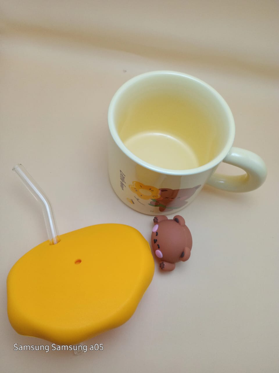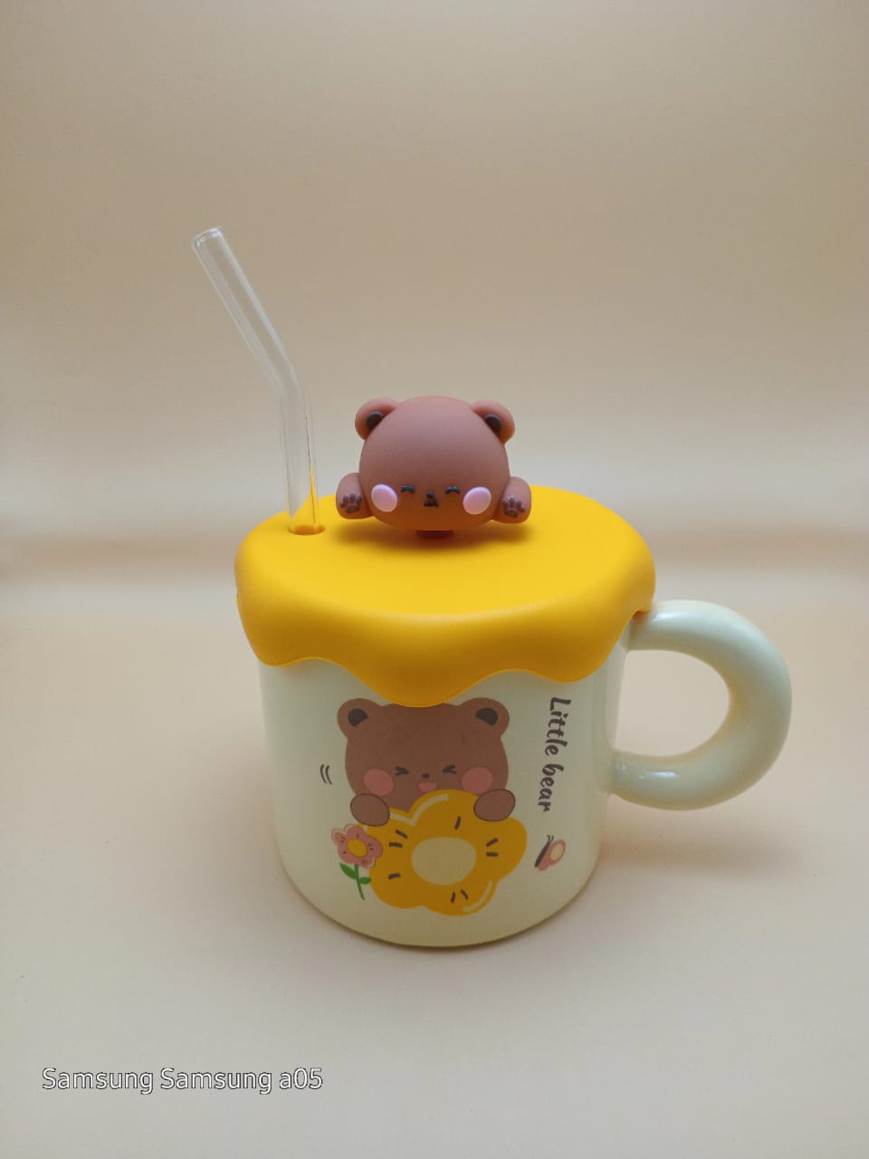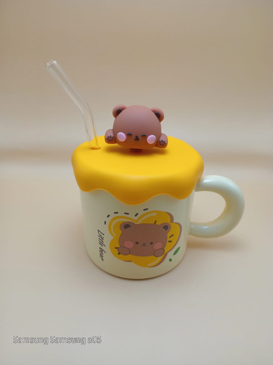 Little Bear Ceramic Mug with Silicone Lid & Straw – Cute & Functional Drinkware 🐻💛