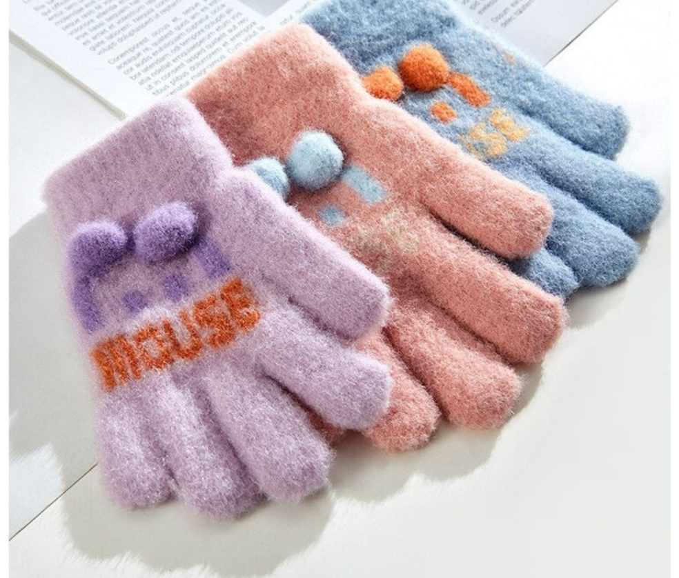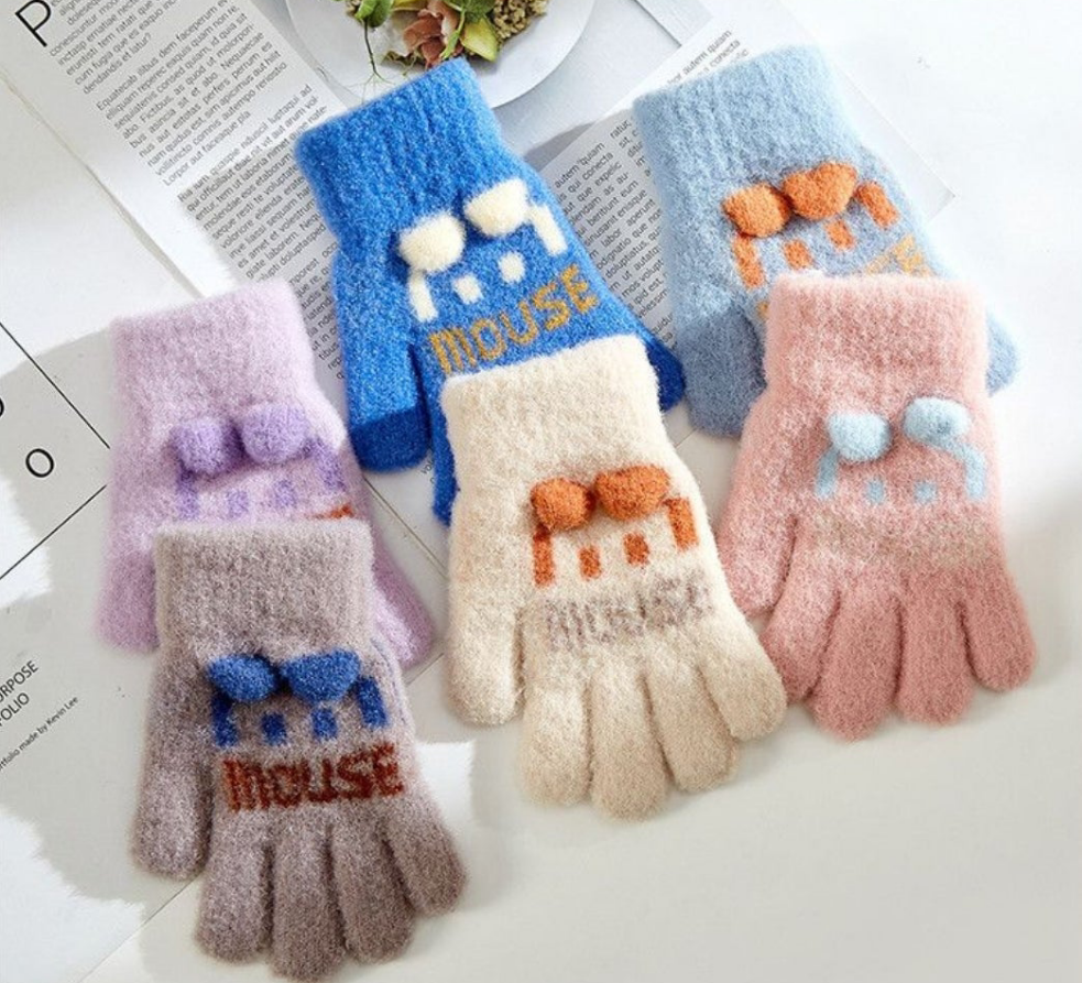 Design & Style:They come in various colors and styles, including full-finger gloves and mittens, with some featuring cute cartoon animal patterns, such as a "Mouse" design prominently seen in the image's text.