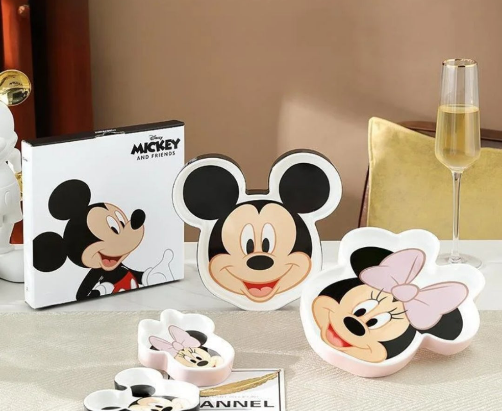 The design features Mickey and Minnie Mouse, adding a touch of Disney charm to your table.