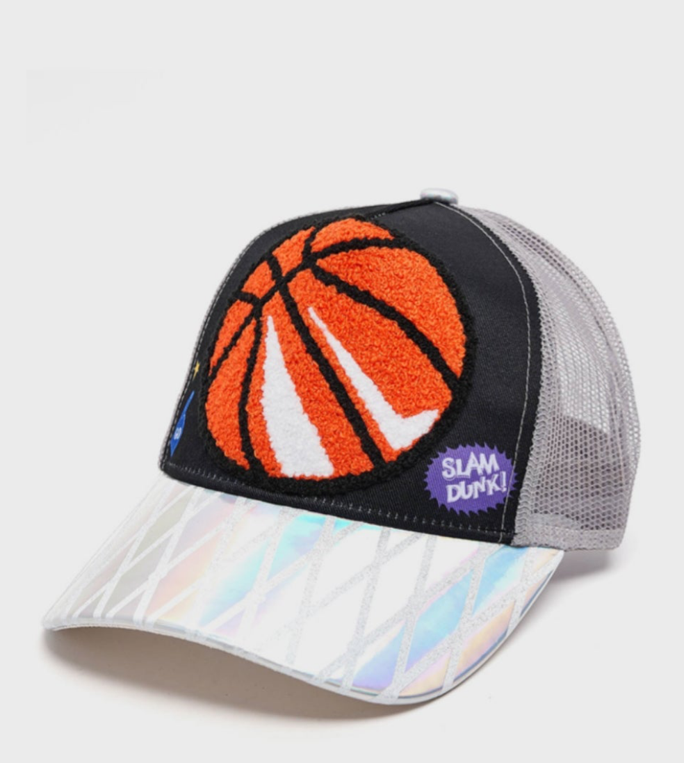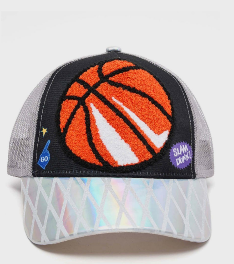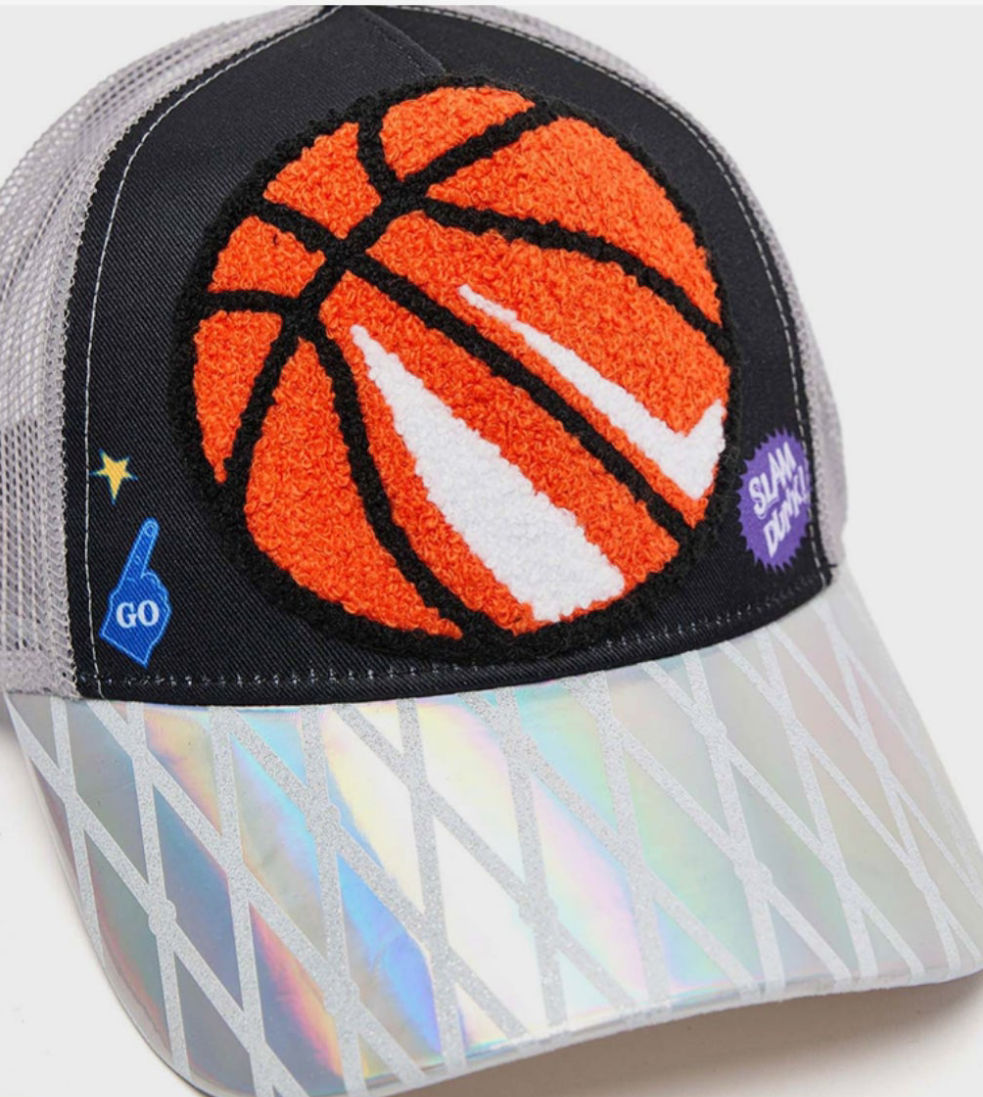 Front Design: The front features a large, textured orange basketball with white accents, likely representing a swoosh or a similar design element.
