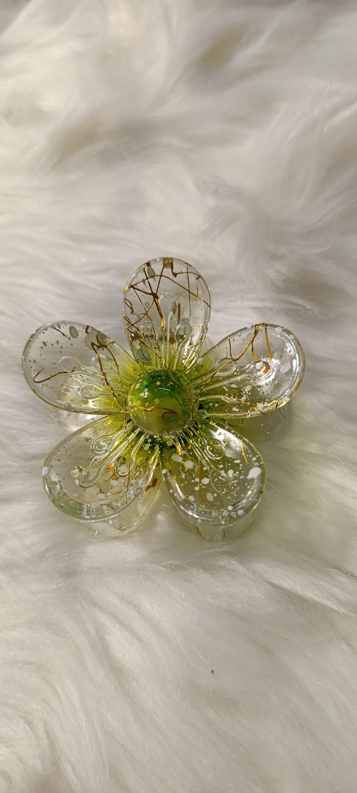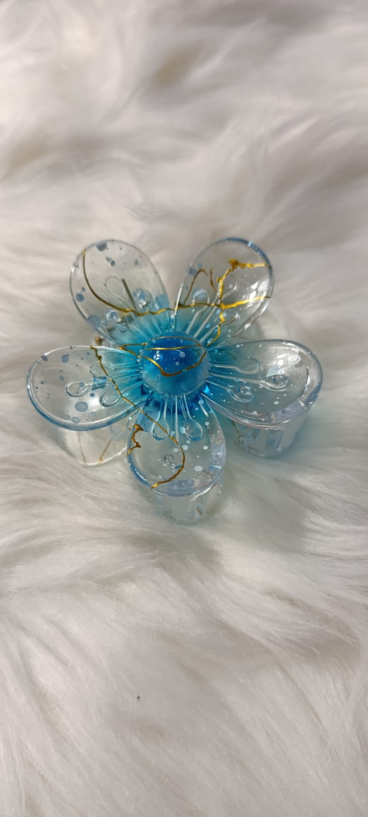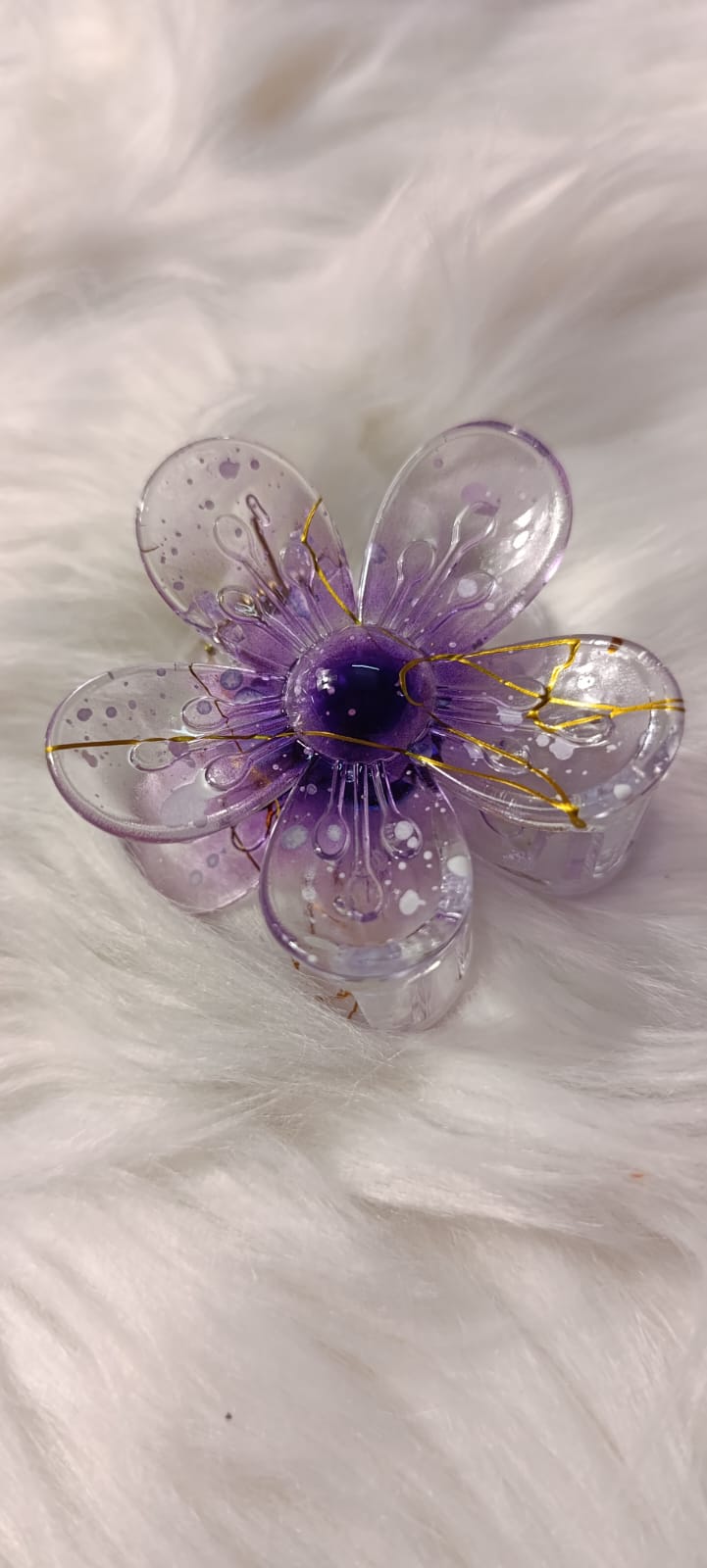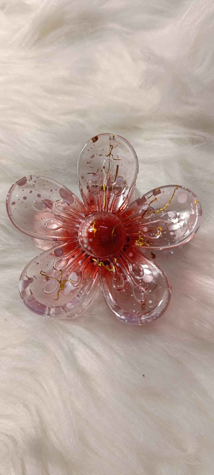 Add a touch of floral charm to your hairstyle with our stunning Elegant Blossom Hair Claw Clips. This vibrant collection features beautifully crafted flower-shaped clips in an array of captivating colors, including clear with hints of red, pink, yellow, green, purple, and blue, all adorned with delicate gold-toned accents.