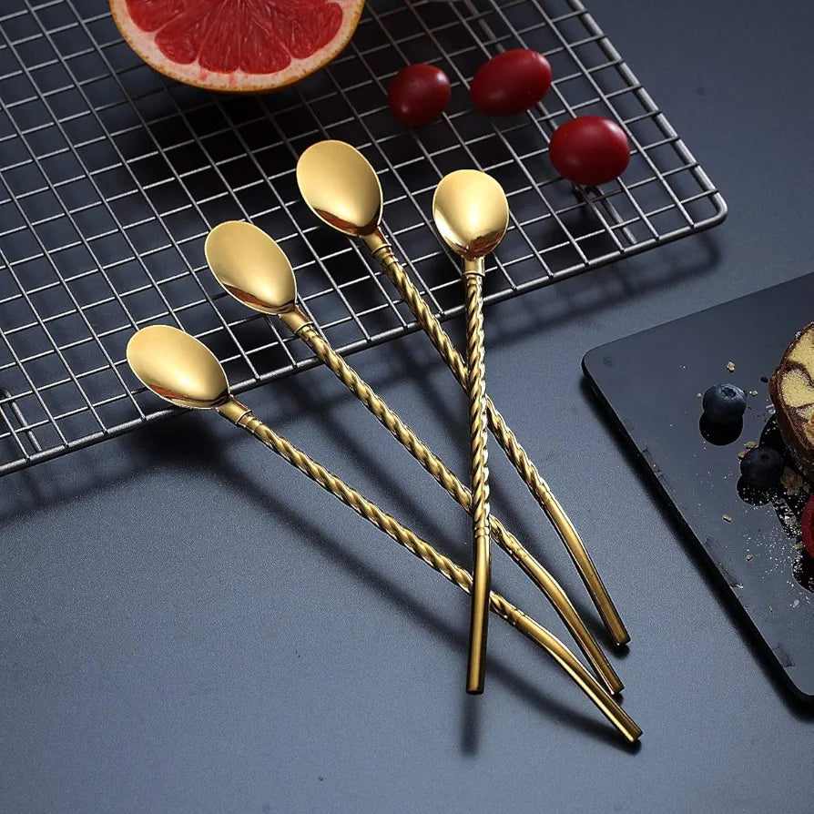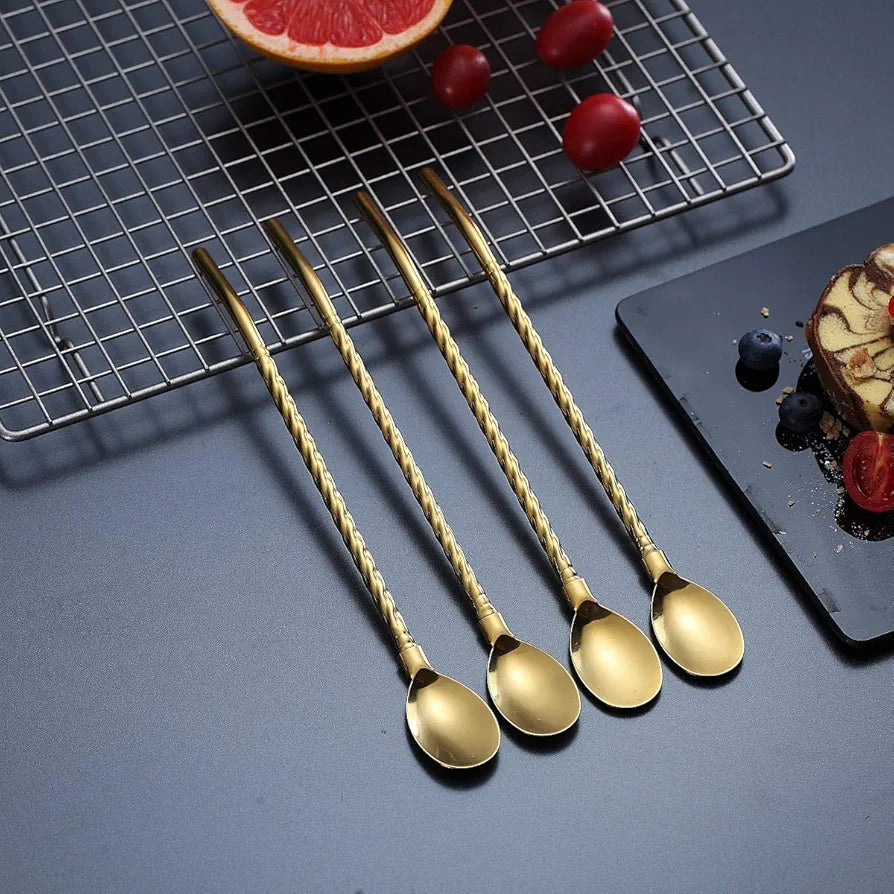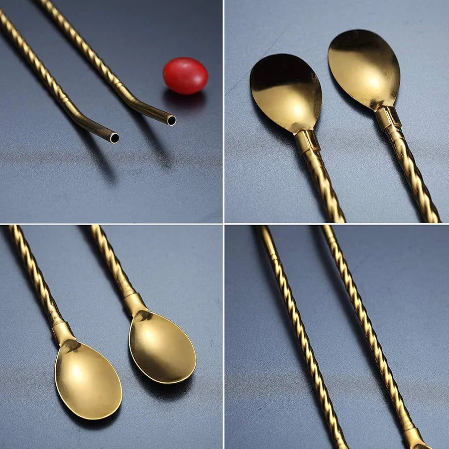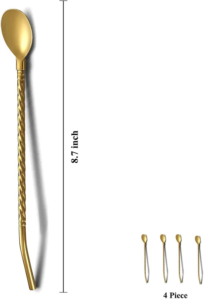 Elevate your beverage experience with these elegant and practical 2-in-1 straw spoons. Crafted from durable stainless steel with a sleek gold finish, these utensils combine the function of a spoon and a straw into a single, stylish tool. The long, twisted handle provides a comfortable grip and doubles as a reusable straw, while the oval spoon head is perfect for stirring drinks or scooping up toppings like ice cream or fruit.