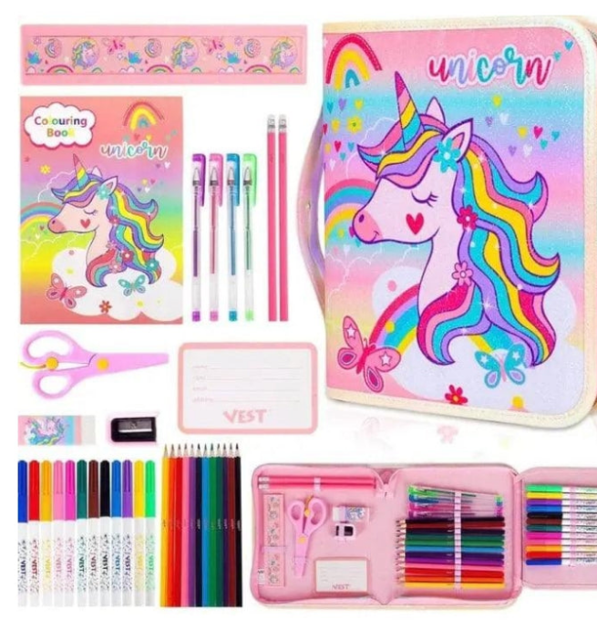 This complete stationery set includes 36 essential pieces to cover all your child's needs. The stylish zip-it design, made from strong and lightweight materials, keeps everything organized and easily accessible. Compact and portable, it's perfect for school and on-the-go creativity. Available in bright and fun colors to make learning more enjoyable.