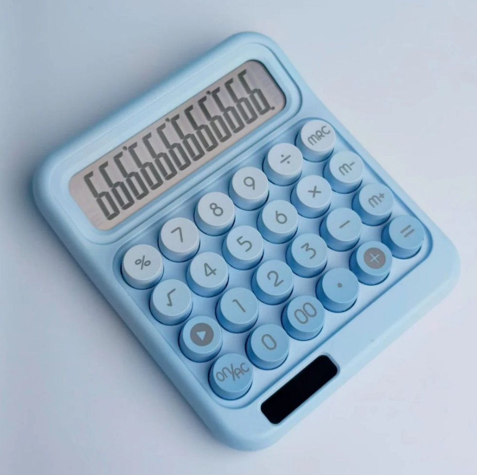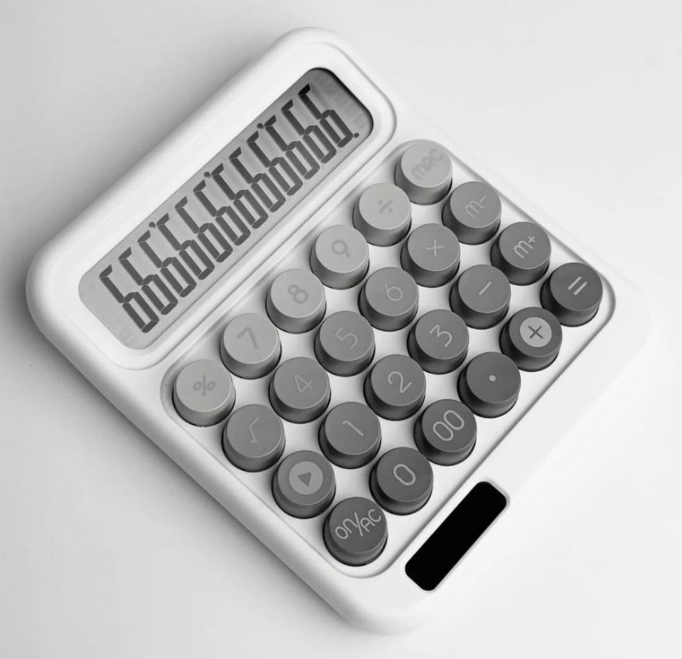 The typewriter-style calculator, a sleek and practical addition to any home, school, office, or retail space.