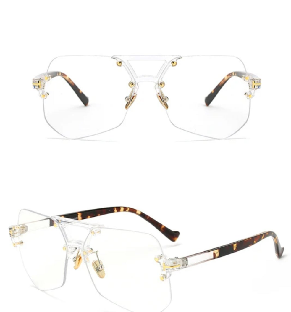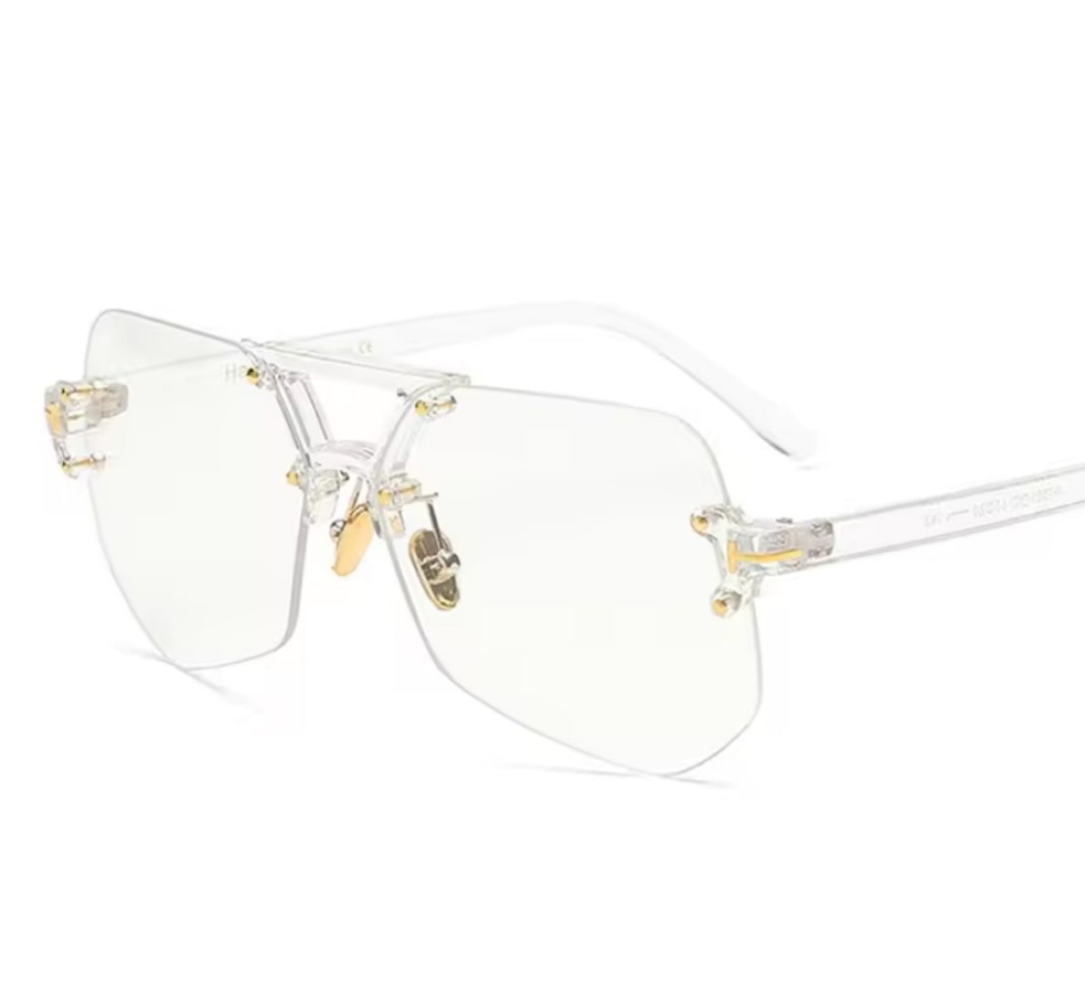 - Rimless Design: The most striking feature is the absence of a surrounding frame, which creates a minimalist and lightweight aesthetic, emphasizing the lenses and the wearer's facial features.