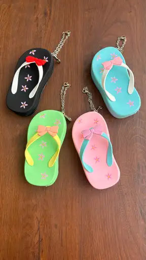 Unique Design: Features a charming flip-flop or sandal shape in vibrant, assorted colors with a decorative bow accent.