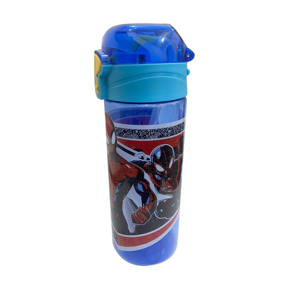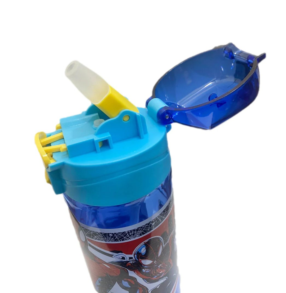 It features a Spiderman design and often includes a straw or sipper for easy drinking.