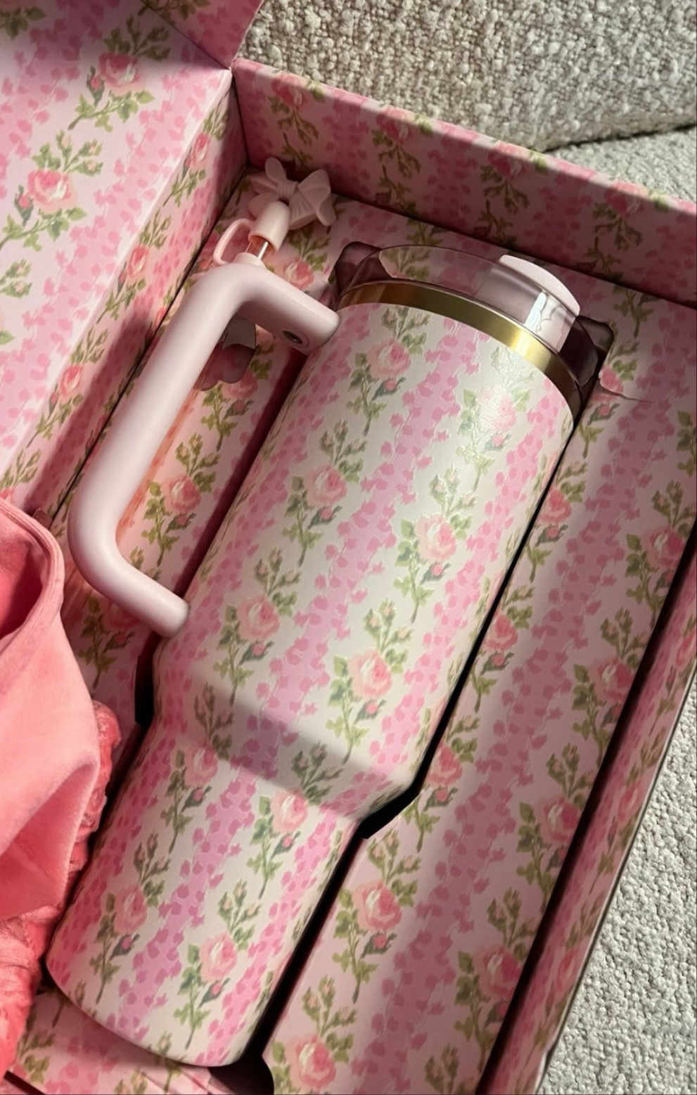 Celebrate the season in style with the Stanley x LoveShackFancy Holiday Quencher. This 40 oz tumbler combines Stanley’s legendary performance with LoveShackFancy’s signature dreamy aesthetic—featuring delicate florals, soft pastels, and a touch of holiday sparkle.