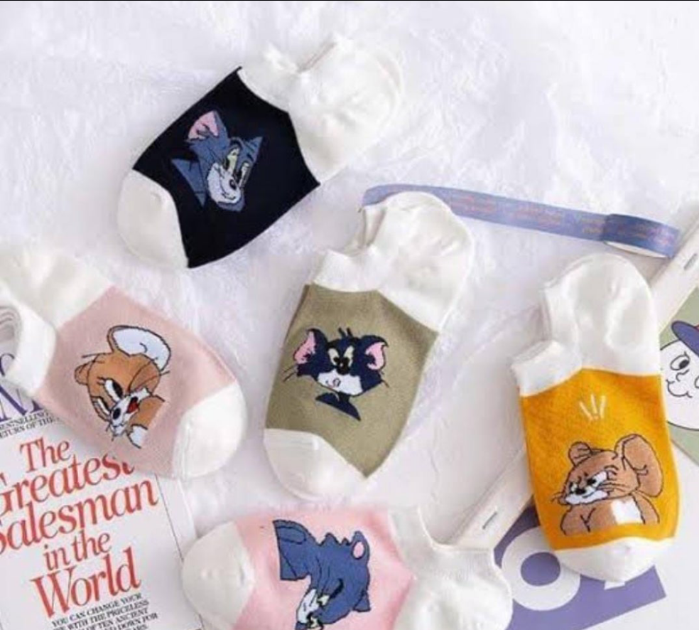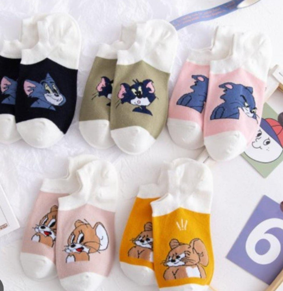 Characters and Themes:The socks prominently feature graphics of Tom the cat and Jerry the mouse, capturing their iconic interactions and expressions, adding a playful touch for fans of the show.