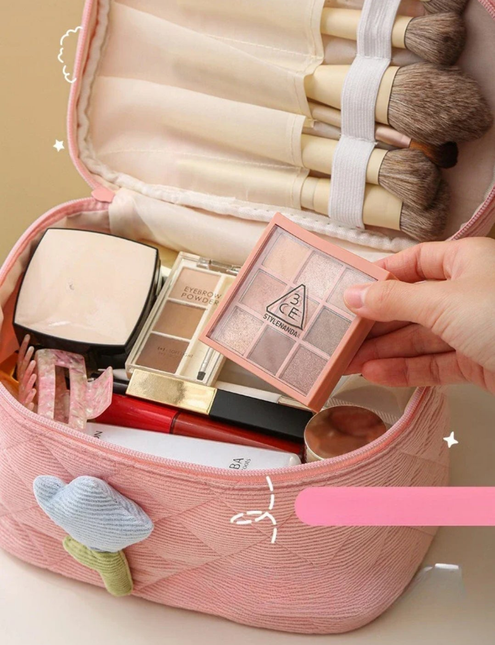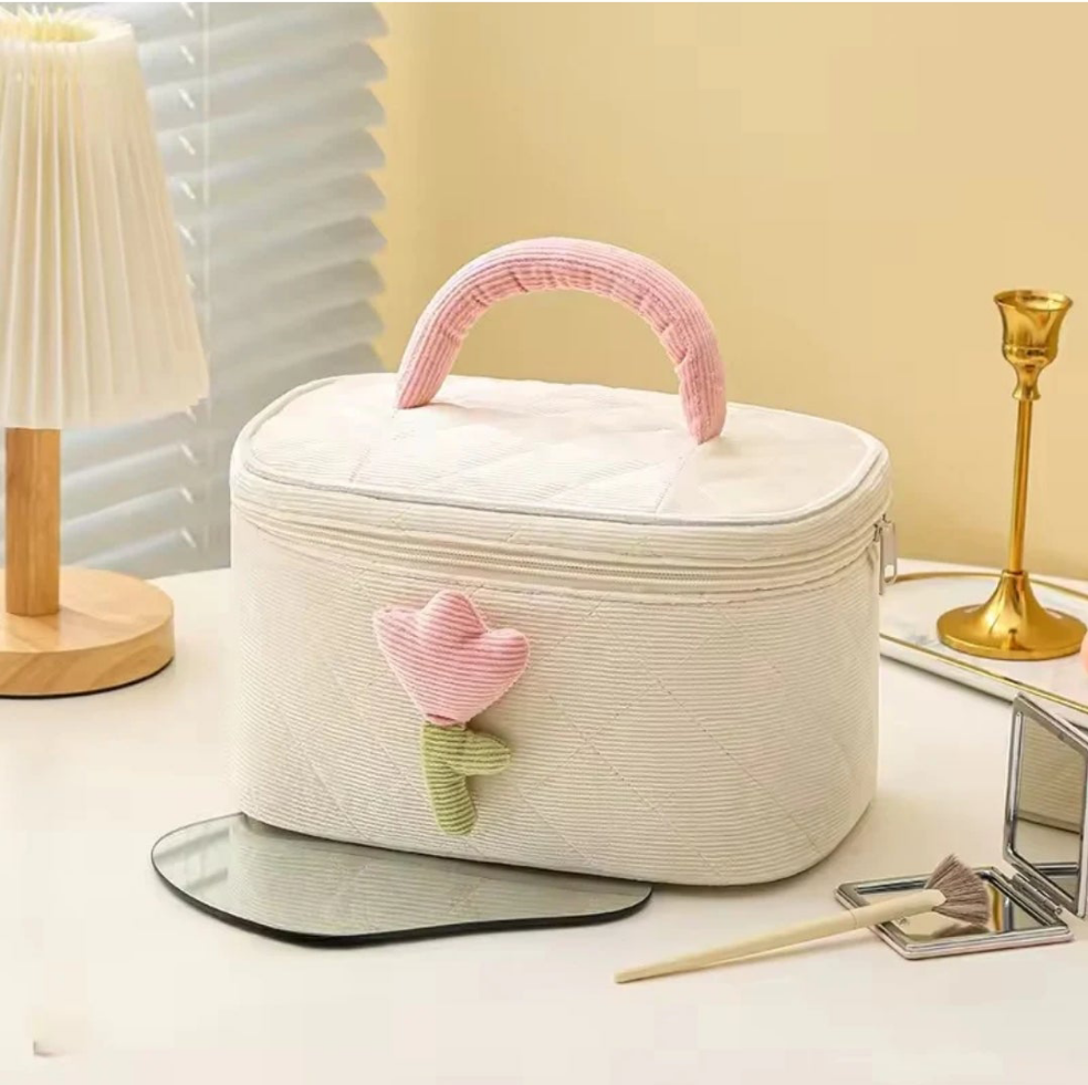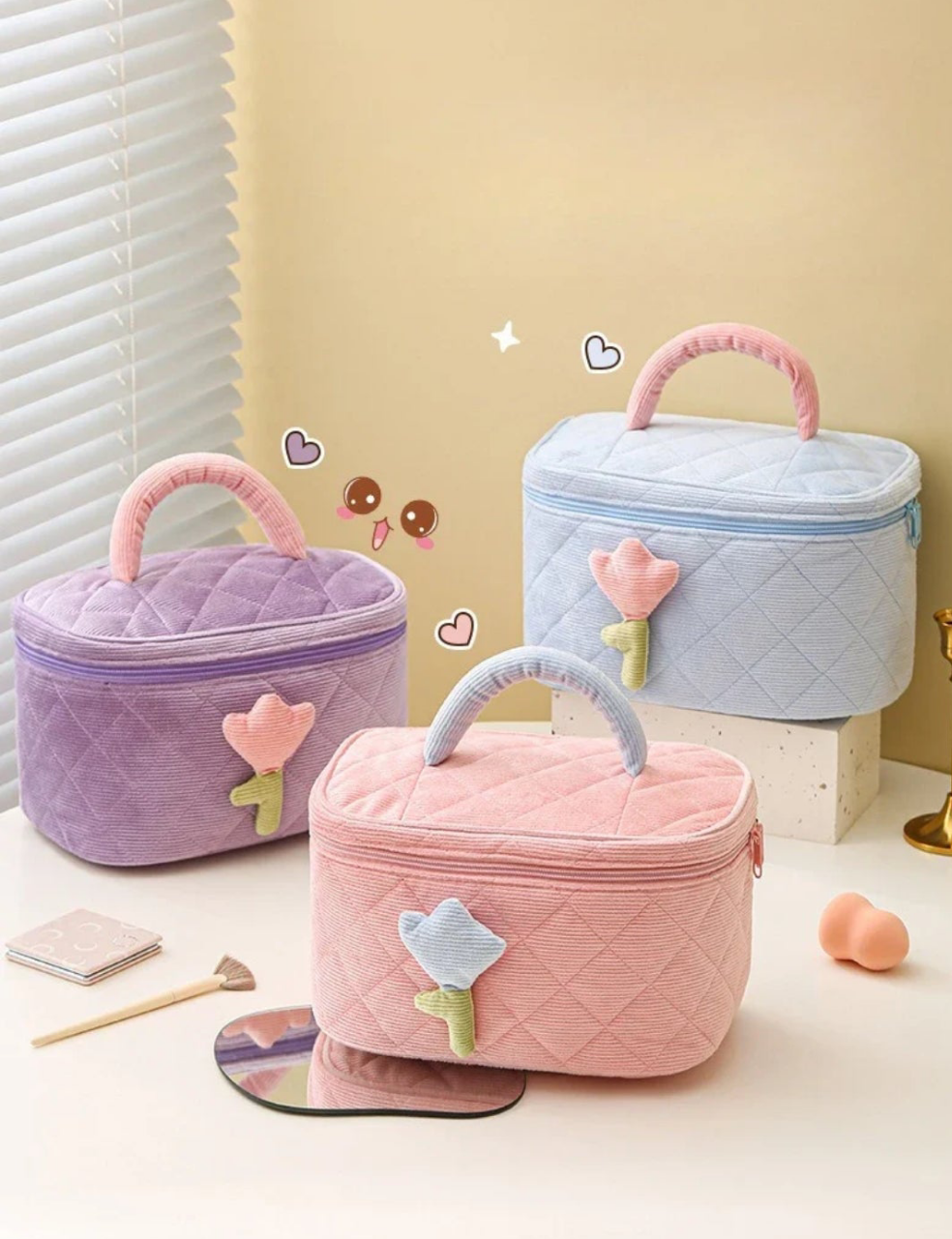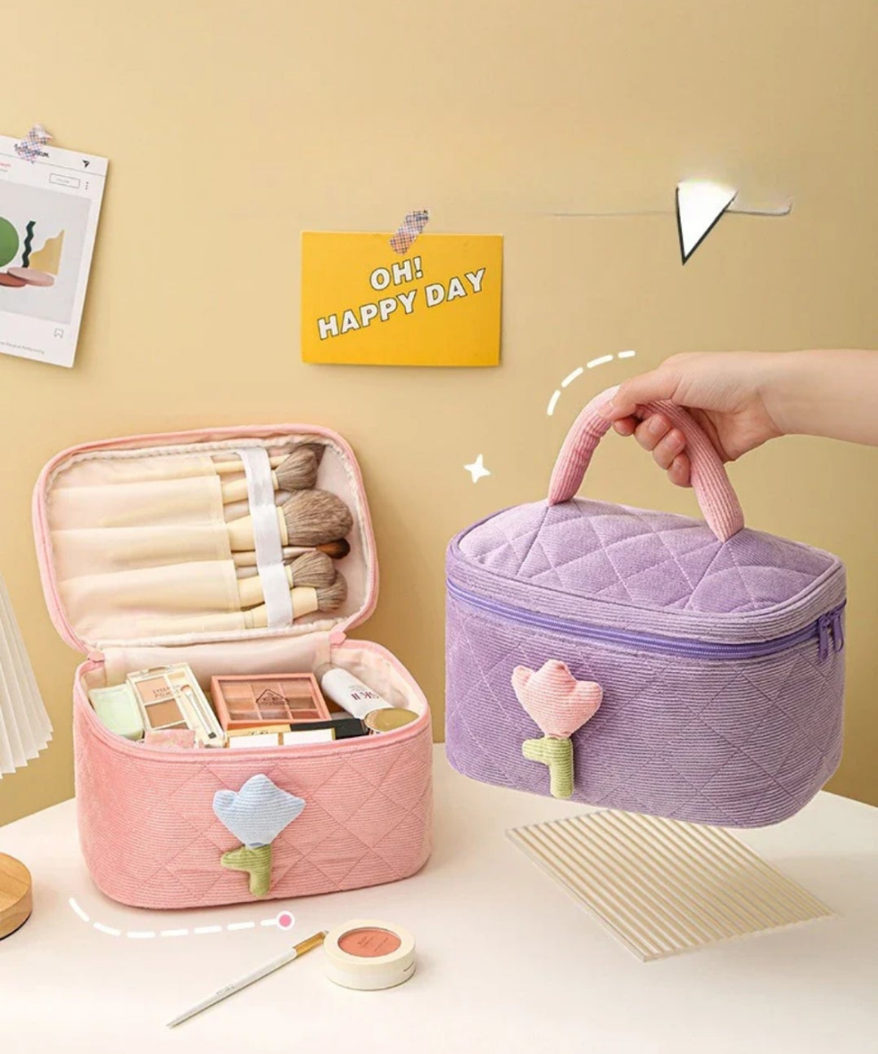 Highlight🌷 Elegant tulip flower design👜 Large capacity to hold all beauty essentials✈️ Ideal for travel, daily use, or organizing your vanity🔒 Zipper closure for secure storage💐 Perfect gift for women, students, and makeup lovers
