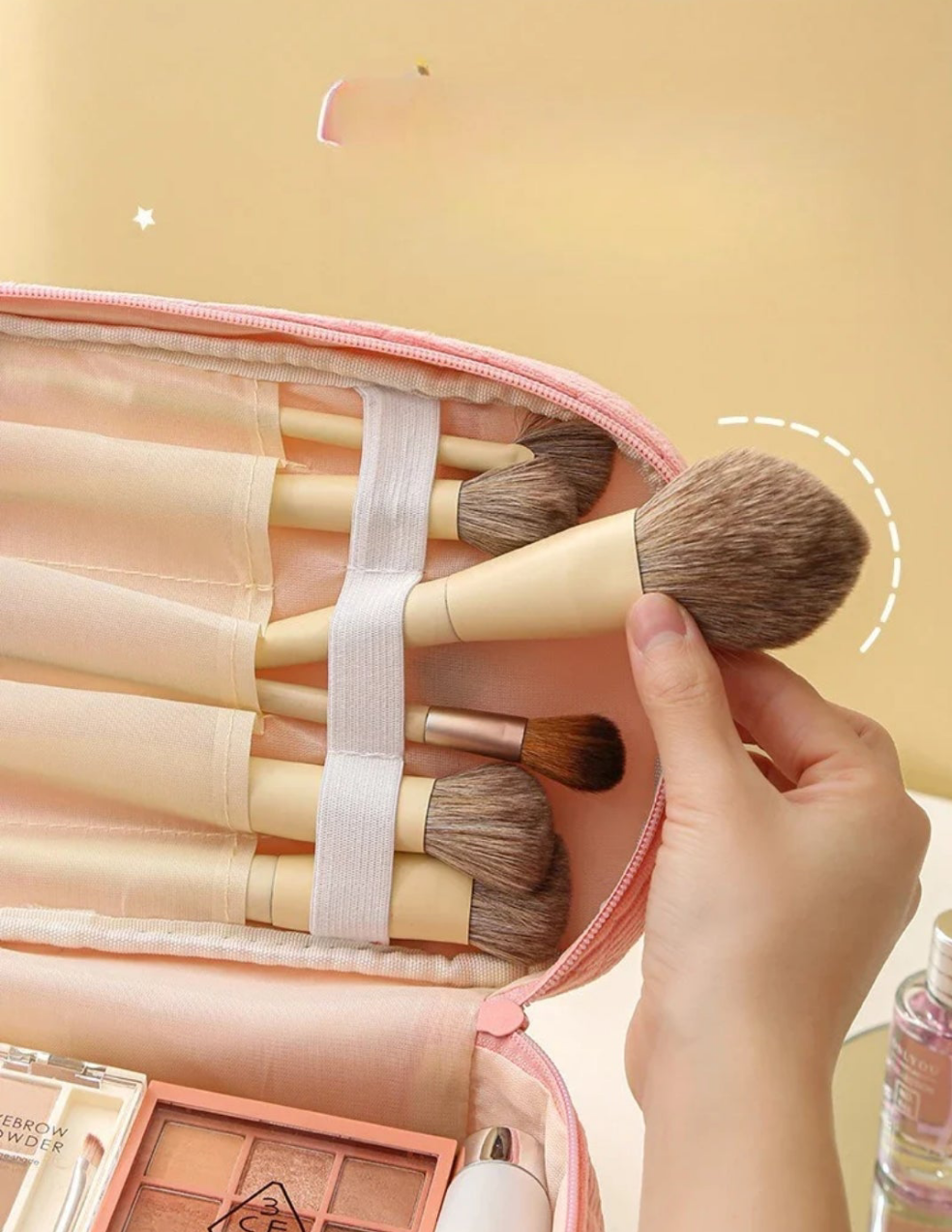Features:Beautiful Floral Design: Soft tulip print adds charm and styleSpacious Interior: Fits cosmetics, brushes, toiletries, and accessoriesDurable & Lightweight: Made with soft, high-quality material for easy travelZipper Closure: Smooth and secure to keep items in placePortable & Foldable: Easy to carry in suitcases, handbags, or backpacksMulti-Purpose Use: Use as a makeup pouch, toiletry bag, or travel organizer