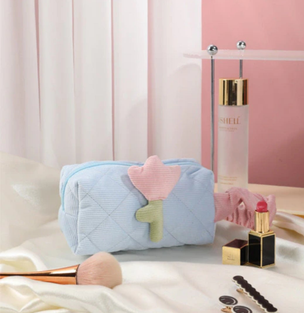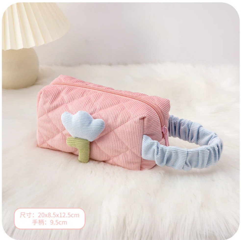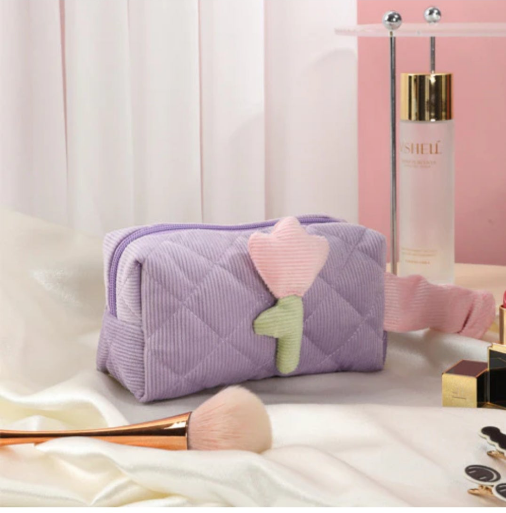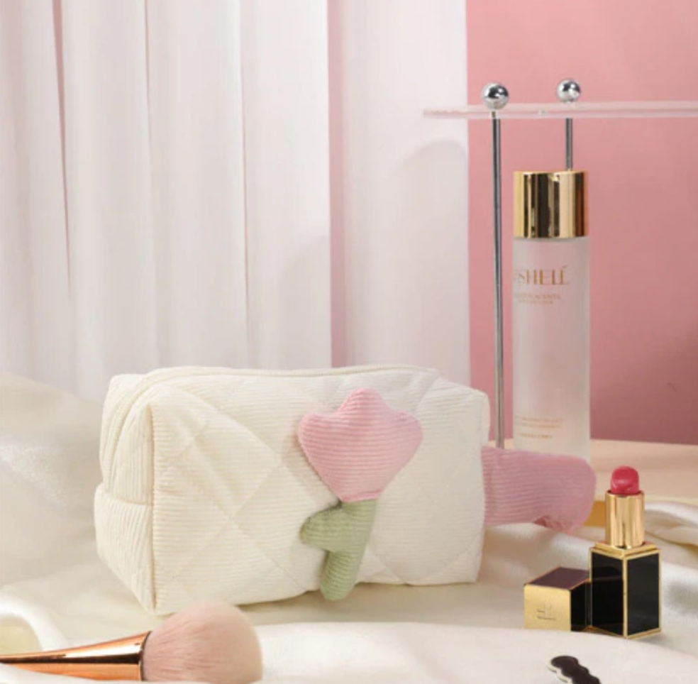 Tulip Flower Pouch. Featuring a graceful tulip print and a spacious interior, this large capacity cosmetic bag is perfect for storing makeup, skincare, toiletries, and travel essentials. With its secure zipper soft touch fabric, and portable design, it’s both functional and fashionable ideal for home travel or gifting.