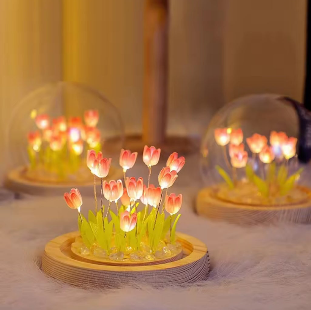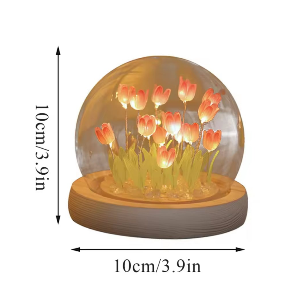 Ideal Gift: Create a romantic ambiance with this DIY tulip atmosphere light. Its decorative wooden base and dome glass lampshade add an elegant touch. The LED light emits a gentle, glare-free glow, ensuring comfort and eye protection. Perfect for gifting to loved ones, this tulip light will create lasting memories and make any occasion more special.