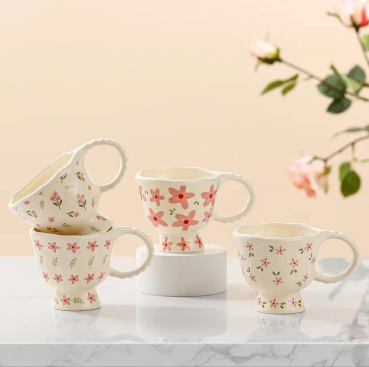 These are ceramic coffee or tea mugs, often referred to as "Bow Ceramic Mugs" or "Flower Ceramic Mugs" due to their design.