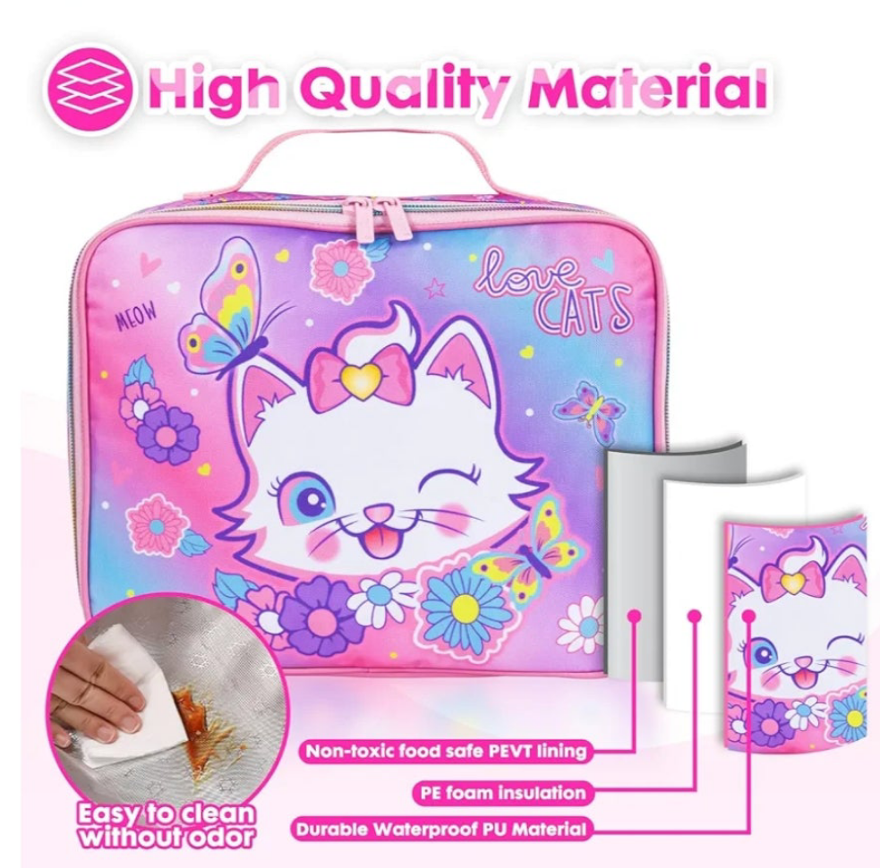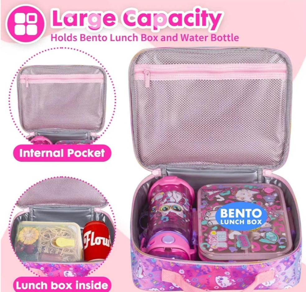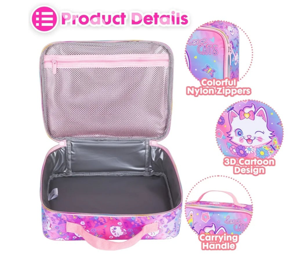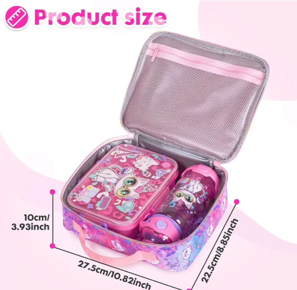 It is compact yet spacious enough to hold a lunch box, bottle, and snacks.