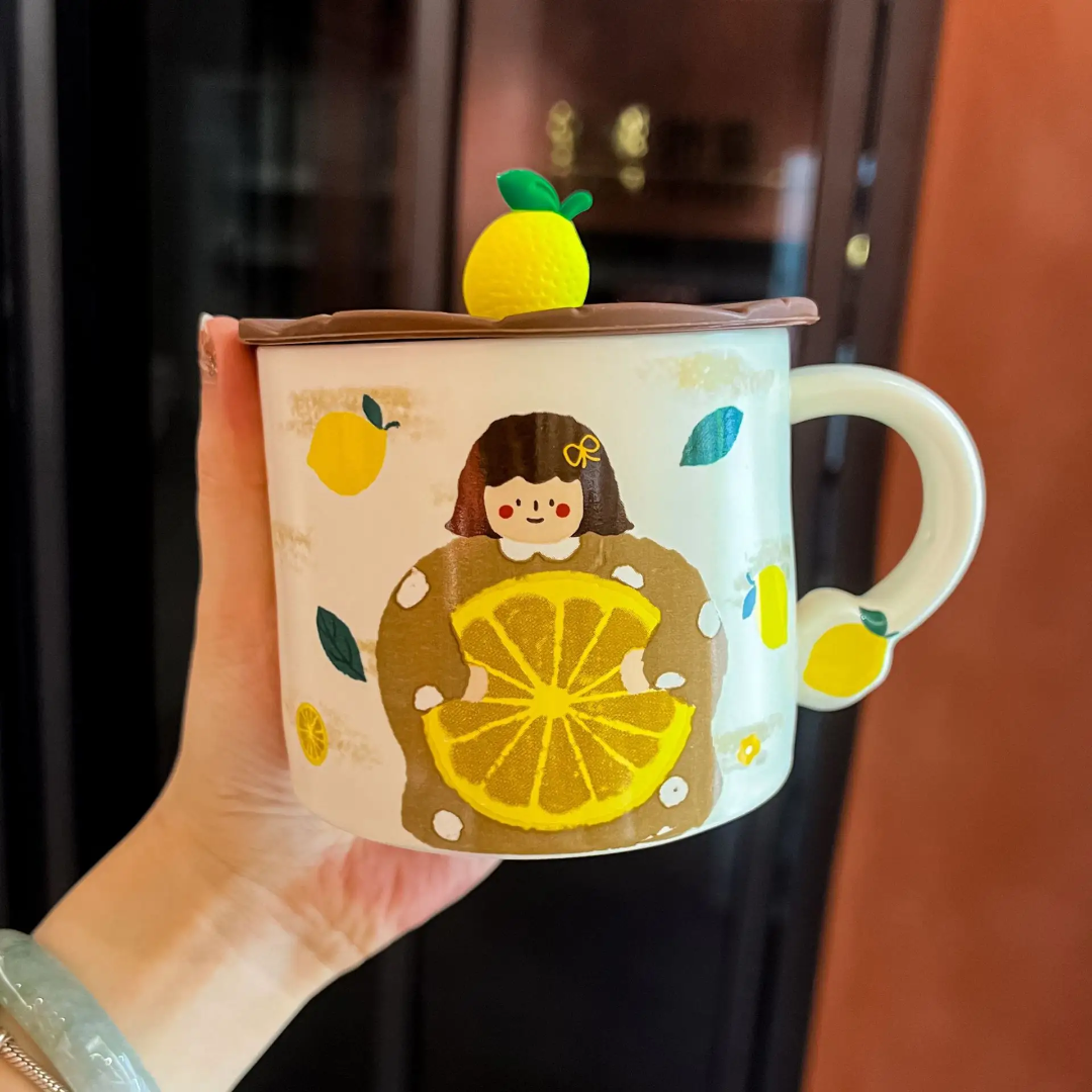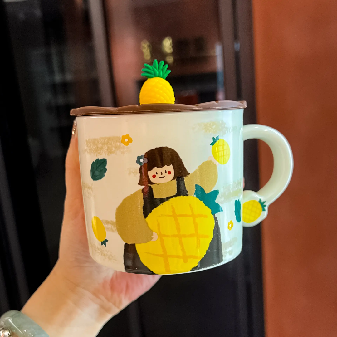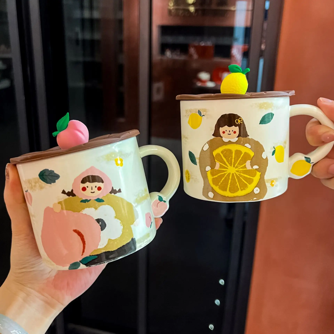 Add a touch of sweetness to your daily coffee or tea routine with these adorable fruit-themed ceramic mugs! Each mug features a charming illustration of a cheerful character dressed in a fruity outfit — one hugging a big strawberry, the other holding a pineapple.